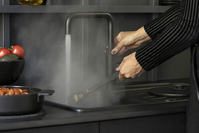 Mit dem Quooker erhalten Sie kochendes, kaltes, warmes sowie (mit dem optionalen CUBE) gekühltes stilles und sprudelndes Wasser – alles aus einem einzigen Hahn. Die niederländische Erfindung kombiniert höchste Funktionalität mit innovativem Design. Dank kindersicherer Bedienung und doppelwandigem Auslauf ist die Nutzung absolut sicher. Der Quooker spart Zeit, Energie und Plastik. Ideal für Tee, Babynahrung oder Pasta – ganz ohne Wasserkocher oder Sprudler.