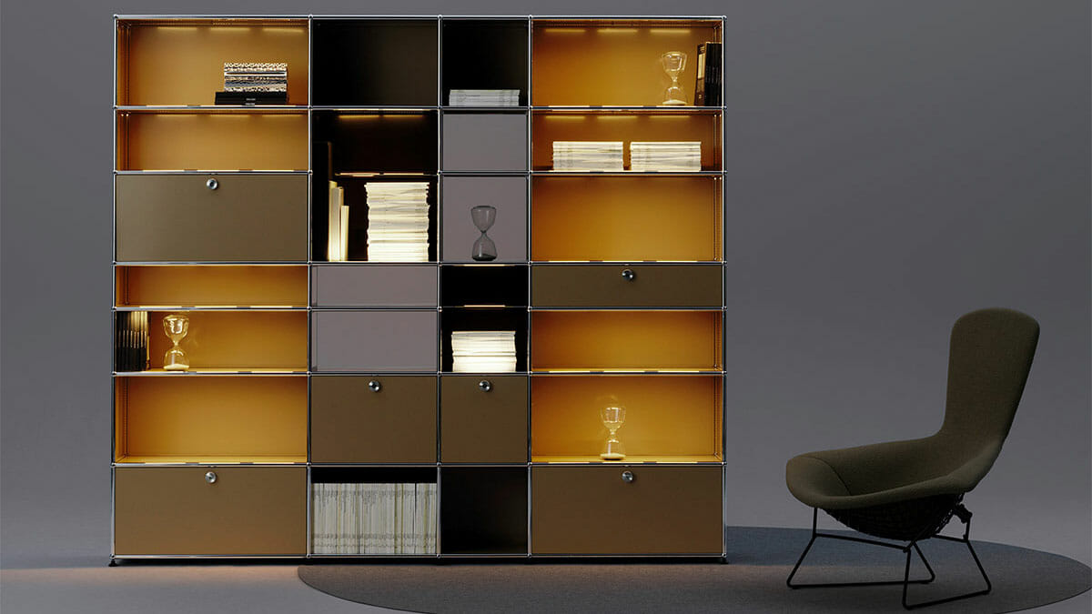 Kann man einen Klassiker noch besser machen? Und ob! USM Haller jetzt in einer revolutionären Weiterentwicklung mit integriertem Licht. Komplett kabellos, dimmbar und energieeffizient. Auf Wunsch auch mit inkludiertem USB-Charger für Mobilgeräte erhältlich. USM Haller E – jetzt bei uns in der Ausstellung!