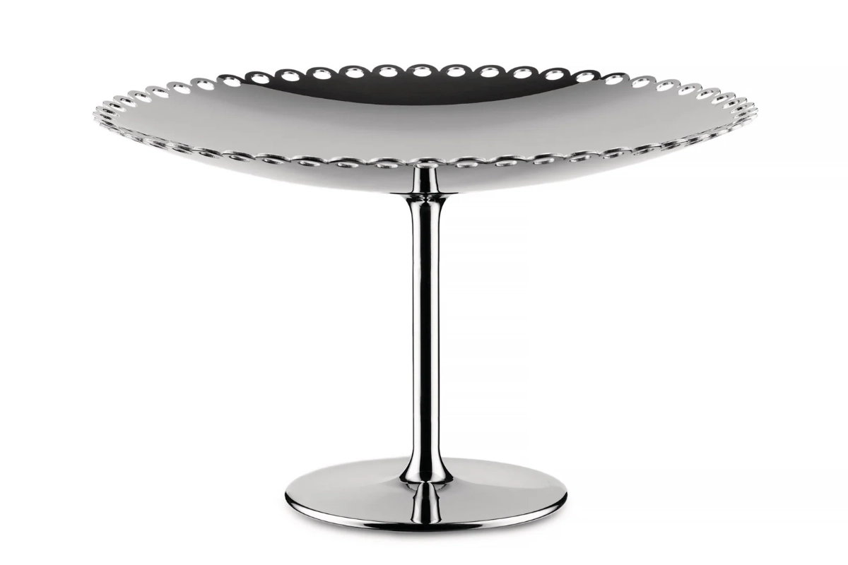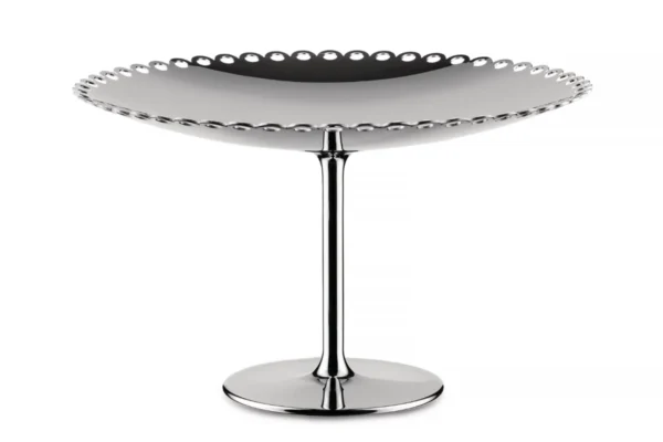 Eleganz in PerfektionDiese Etagere von Alessi ist Teil des Projekts Edges, das mit einer zarten, spitzenartigen Randverzierung eine harmonische Verbindung zwischen Funktion und Emotion schafft. Entworfen von Nika Zupanc, vereint die Etagere ikonische Einfachheit mit anspruchsvollem Design. Die kleinen, perforierten Löcher an den Rändern verleihen der Schale eine einzigartige Ästhetik und unterstreichen ihre zeitlose Eleganz. Erhältlich in Edelstahl 18/10 oder mit edler PVD-Messing-Beschichtung, ist Edges sowohl ein dekorativer Blickfang als auch ein funktionales Highlight für den Alltag.
