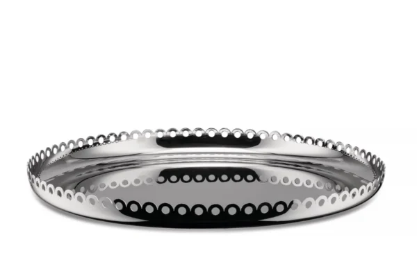 Eleganz in PerfektionDas Programm Edges besteht aus einem Korb, einer Etagere, einem Kühler und einem Tablett. Die zarte, spitzenartige Randverzierung schafft eine harmonische Verbindung zwischen Funktion und Emotion. Entworfen von Nika Zupanc, vereinen die Produkte ikonische Einfachheit mit anspruchsvollem Design. Die kleinen, perforierten Löcher an den Rändern verleihen der Kollektion eine einzigartige Ästhetik und unterstreichen ihre zeitlose Eleganz.
