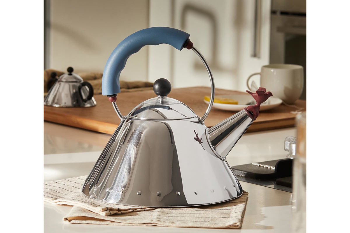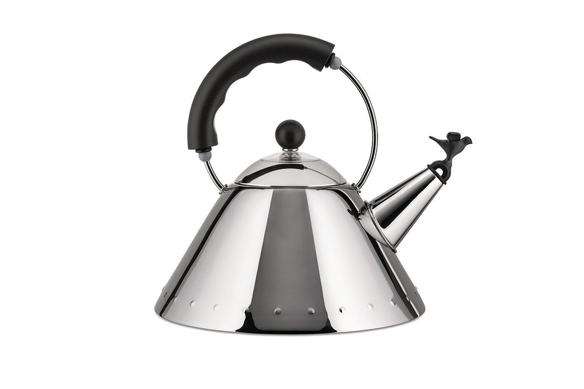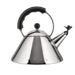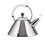 Neue Größe.Der 9093 Vogelgeformte Pfeifenkessel 9093 ist einer der weltweit meistverkauften Alessi Artikel. Das Design dieses 1985 von Michael Graves entworfenen Wasserkochkessels verbindet kultivierte Einflüsse europäischer Kunst, amerikanischen Pop und Zitate aus präkolumbianischen Kulturen. Diese sehr persönliche Bildsprache von Graves ist der Grund für den außergewöhnlichen Erfolg, den der Kessel seit seiner Herstellung hat. Elegant, elegant, aber lustig und spielerisch: Wenn das Wasser sprudelt, singt der Vogel und schnappt sich unweigerlich ein Lächeln.