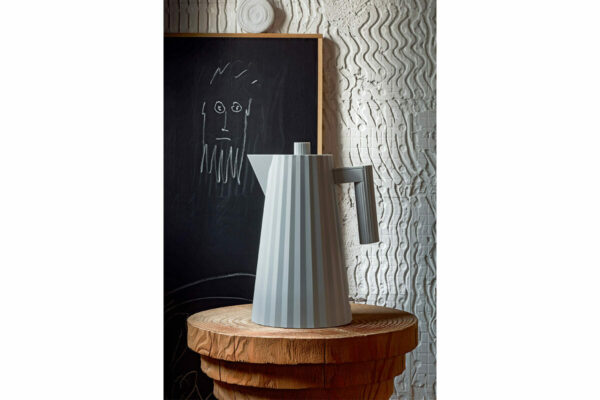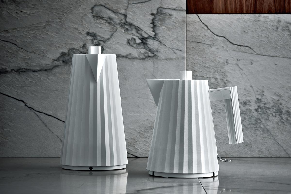 Bereits der Name Plissé gibt Aufschluss über die skulpturale Natur seines Designs: Wie ein Stoff, den eine dicke Falte in ein dreidimensionales Objekt verwandelt, erinnert dieser Wasserkocher an ein Kleid der Haute Couture, ein wunderschönes Objekt, dem in der Küche ein gebührender Platz eingeräumt gehört.
