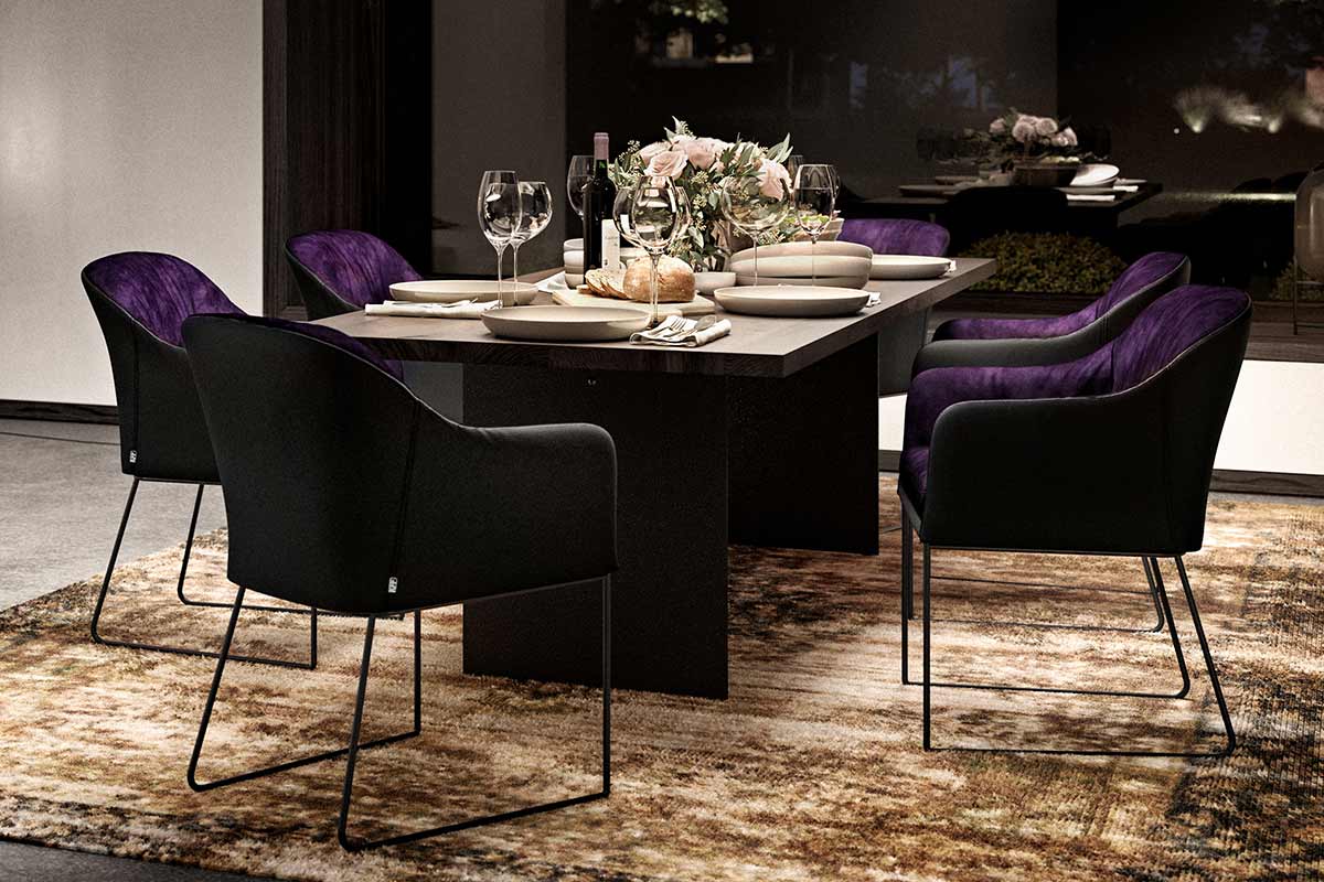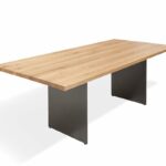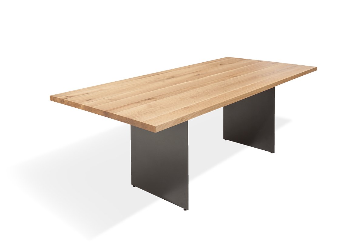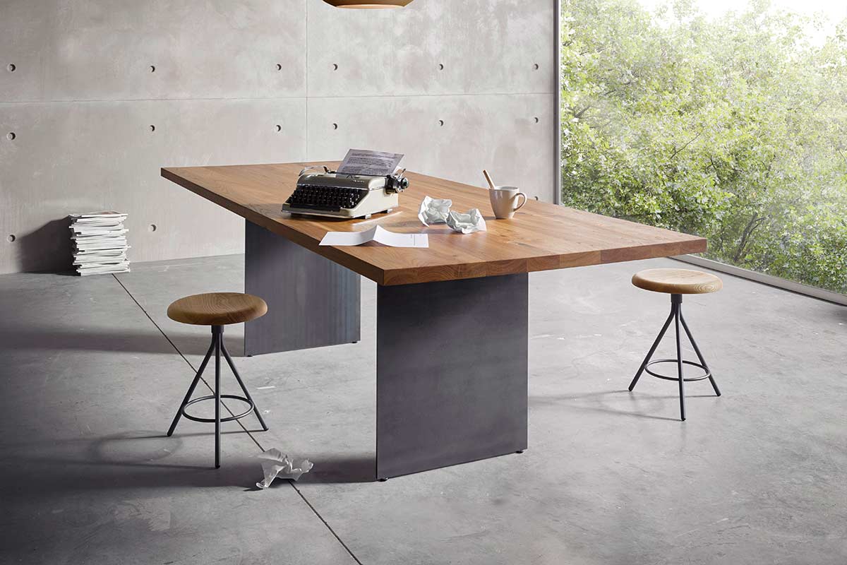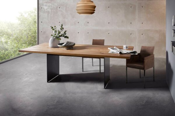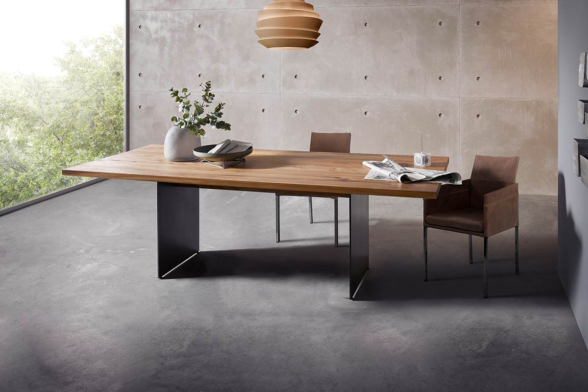 Bewusst zurückhaltend.Die filigranen Stahlwangen und der Kontrast der sorgfältig ausgewählten Materialien sind die gestalterischen Merkmale dieses geometrischen Esstisches. Der Wangenabstand ist variabel und kann entsprechend der Sitzmöbelgröße angepasst werden. Der Tisch DUO von Asco fügt sich in moderne Architektur zurückhaltend ein oder hebt sich im klassischen Interieur bewusst hervor.