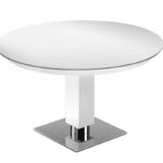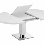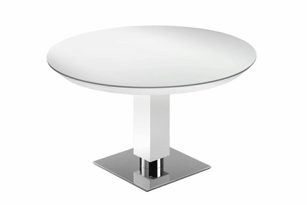 Esstisch TODO, Durchmesser der Platte 120 cm, geöffnet 172 x 120 cm, Platte und Klappeinlage Glas Optiwhite weiß lackiert, Bodenplatte Hochglanz inkl. kostenloser Lieferung im Umkreis von 50 km| Designer | |