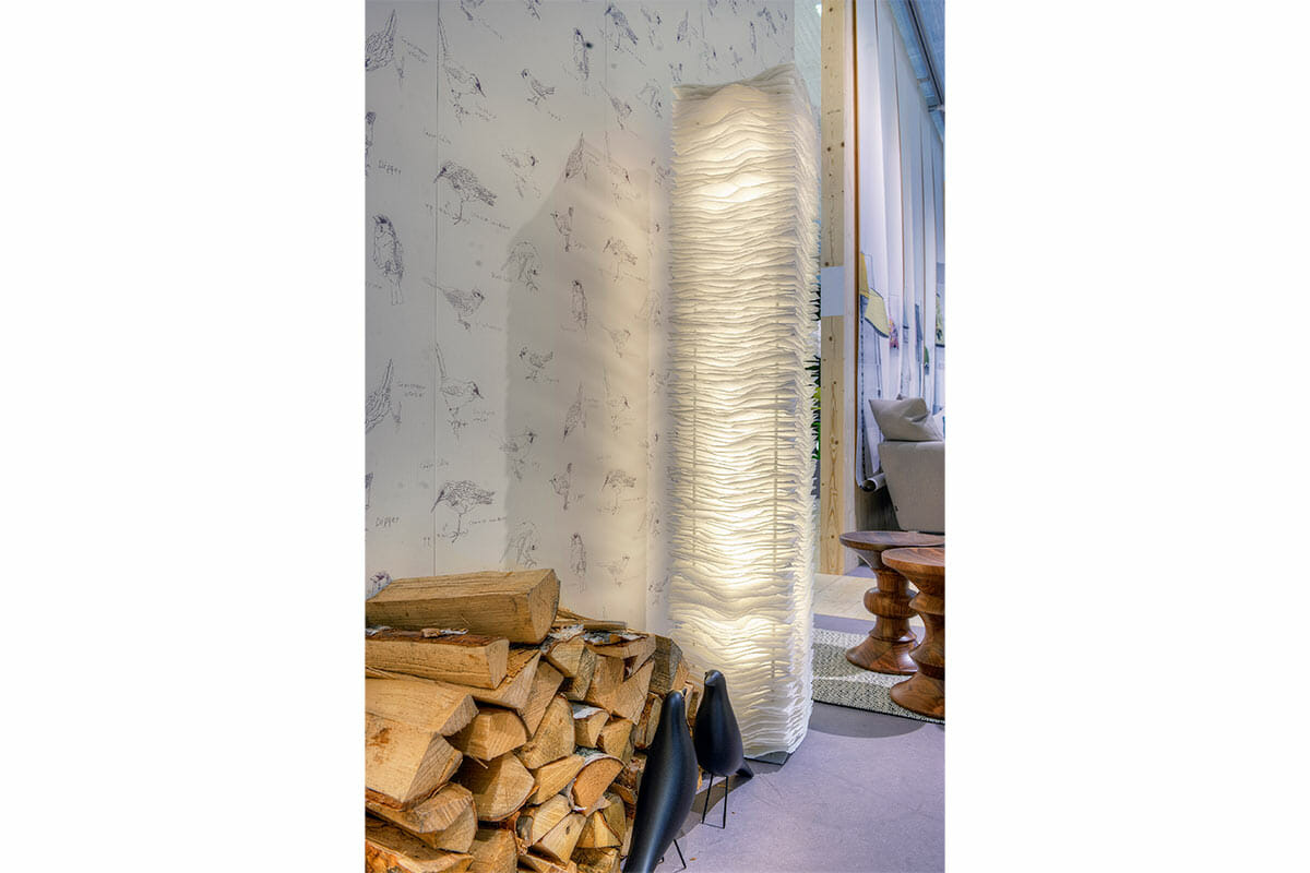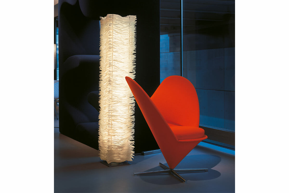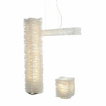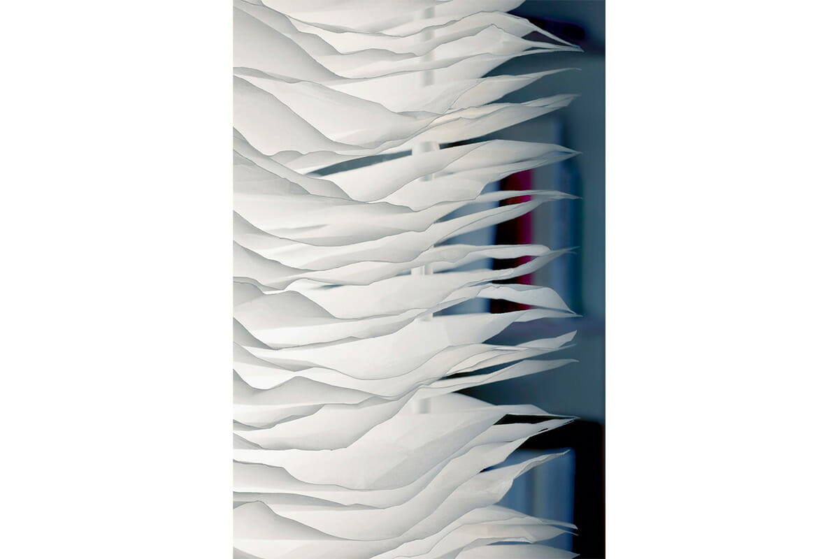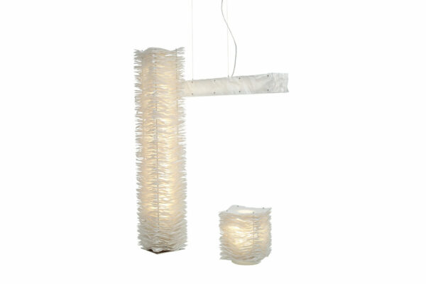 Spannendes Spiel mit Licht und SchattenSteve Lechot schuf mit belux one by one ein spannendes Spiel mit Licht und Schatten. Die Schichten bestehen aus Polyestervlies, das aufgrund mehrerer Veredelungsprozesse praktisch reissfest, alterungsbeständig und schwer entflammbar ist. Die gesamte belux one by one Leuchtenfamilie wird in Handarbeit durch ein Behindertenwerk gefertigt. Das Zerknüllen und Aufreihen der Schichten und Distanzhalter erfordert viel Konzentration und Ausdauer. belux one by one zeigt auf, dass Energiesparen nicht in Kontrast zu Emotion stehen muss: Das kräftige LED Licht leistet sowohl Emotion im gedimmten Zustand wie auch kräftiges Raumlicht. Steh- und Pendelleuchten lassen sich direkt an der Leuchte dimmen.
