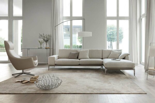Geradezu schwebend präsentiert sich eine lässig-bequeme LoungezoneSPIRIT vereint harmonisch scheinbar unüberwindliche Gegensätze: grazile Anmutung und großzügigen Charakter. Geradezu schwebend präsentiert sich eine lässig- bequeme Loungezone über einem filigranen Gestell aus einem spannungsreichen Materialmix von Holz und Chrom oder Leder. Diese Konstruktion allein ist eine handwerklich-technische Herausforderung, die mit SPIRIT souverän gemeistert wird.