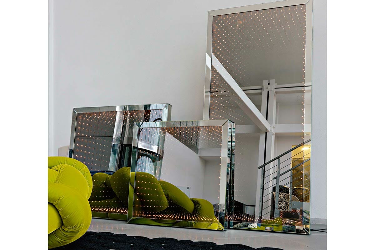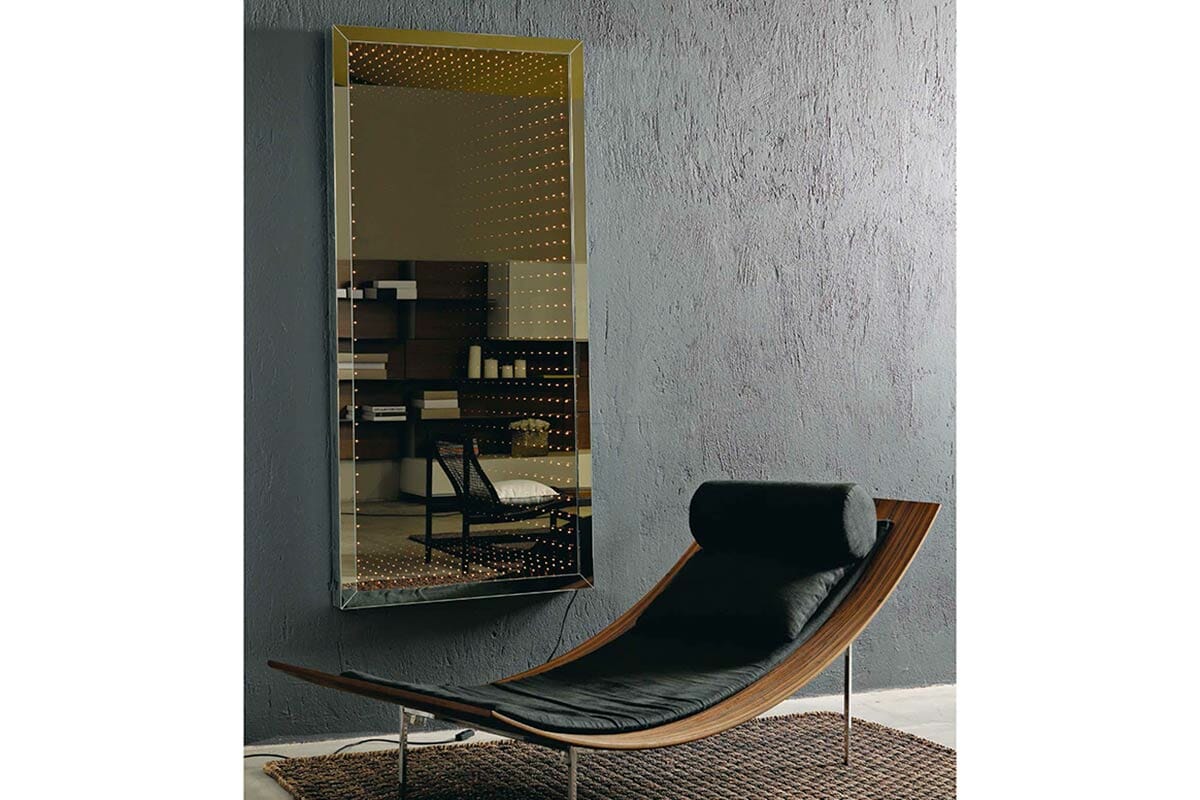 Ein edler Spiegel.Lichttiefenspiegel mit Infinity-Effekt, Rahmen in Spiegel Klar oder Bronze mit auswechselbaren LED Mini- Leuchten umlaufend.