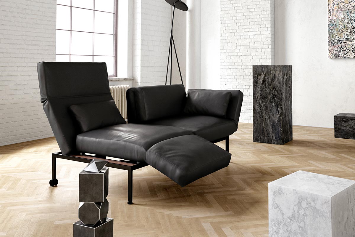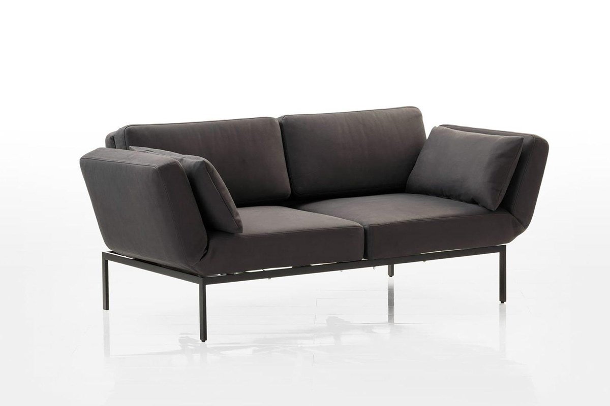 Multifunktionales SofaDas variable roro soft zeichnet sich mit seinen einladend volumenbetonten Polstern durch besondere Weichheit und Gemütlichkeit aus. Ein filigranes Untergestell sorgt derweil für eine luftige, klare Erscheinung. Die Version roro-medium und das kompaktere roro-small sind schlanker und im Polster etwas fester. Beide Versionen sind miteinander kombinierbar. roro-Elemente sind wahre Verwandlungskünstler. Die Drehsitze des Sofas lassen sich um 90 Grad vorschwenken, die Lehnen können aufgefaltet und bis zur Wunschposition abgesenkt werden. Zum Liegen und Schlafen sind die Sitze vollständig horizontal einstellbar.