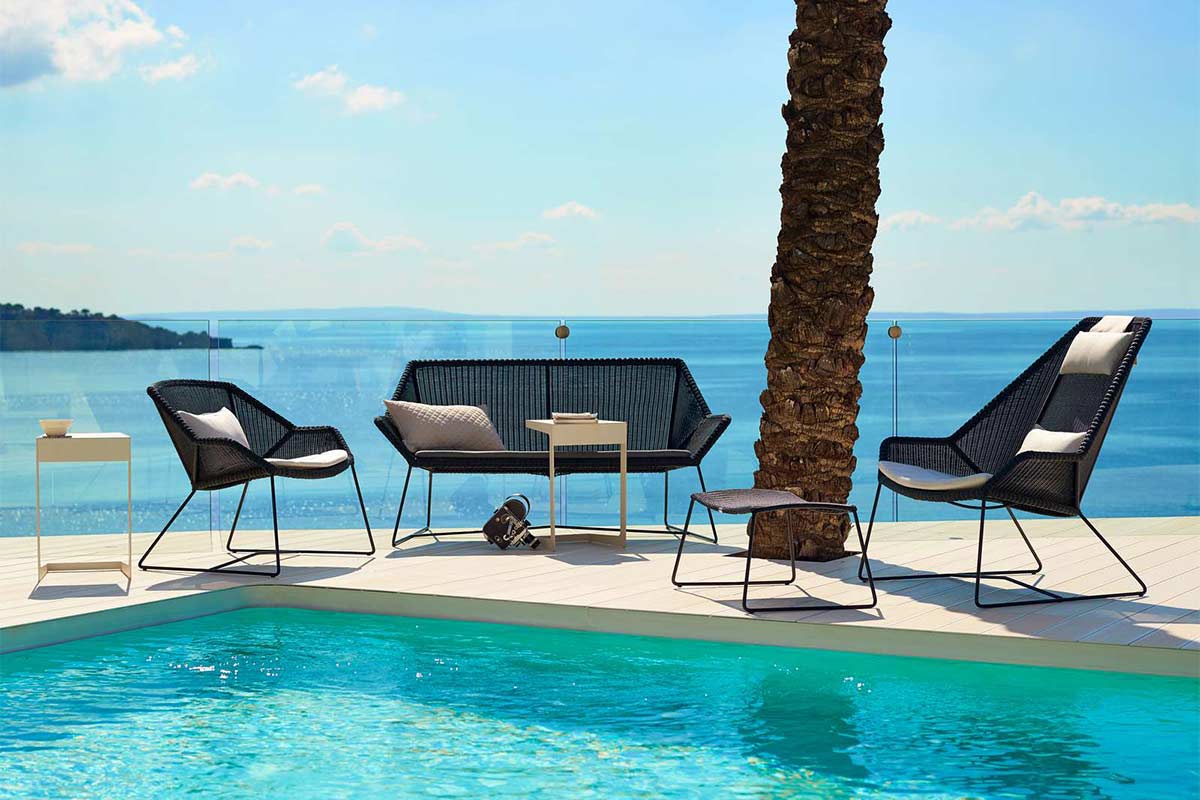 Das ideale Loungesofa für Ihren Garten.Cane-line Breeze Loungesofa. Endlich hat die beliebte Breeze-Familie Zuwachs bekommen: ein schönes Sofa für zwei. Dieser 2-Sitzer ist eine sinnvolle Erweiterung der hellen und stilvollen Breeze-Kollektion. Wie auch die anderen Produkte zeichnet sich auch das Sofa durch die für Breeze typische Eleganz, Leichtigkeit und Optik aus. Das Breeze Sofa kann sowohl als Einzelmöbel, in Kombination mit den anderen Breeze Artikeln oder aber auch als Mix-and-Match-Sofa zusammen mit anderen Cane-line Produkten stehen. Das Breeze Sofa ist in den Farben Schwarz, grau oder Weiß-Grau lieferbar. Mit den passenden Sitzkissen wird dieses Modell schließlich zur Wohlfühl-Oase im Garten.