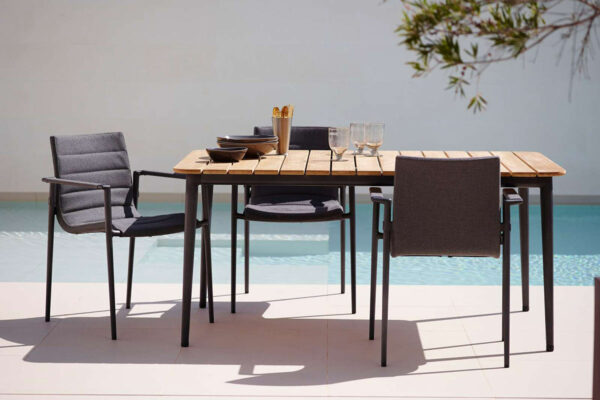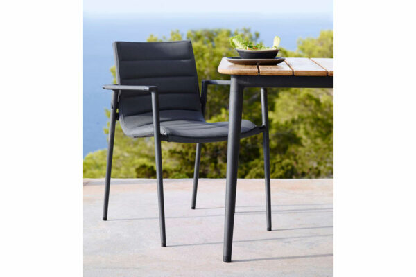 Skandinavisches Design.Der Stuhl Core von Cane-line hat ein zeitloses Design und ist aus formstabilem Material mit langer Lebensdauer gefertigt. Durch das moderne und schlichte Design eignet sich der Stuhl gut für die Einrichtung, da er zu den meisten Dingen passt. Das Besondere an dieser Serie ist, dass die Möbel keine Kissen benötigen, da sie aus dem weichen und kräftigen Cane-line AirTouch-Stoff gefertigt sind, der sich leicht reinigen lässt und nur ein Minimum an Pflege benötigt. Der Rahmen am Core Stuhl ist aus witterungsbeständigem pulverlackiertem Aluminium gefertigt, sodass er sich sowohl drinnen als auch draußen nutzen lässt. Der Stuhl Core lässt sich stapeln und leicht verstauen.