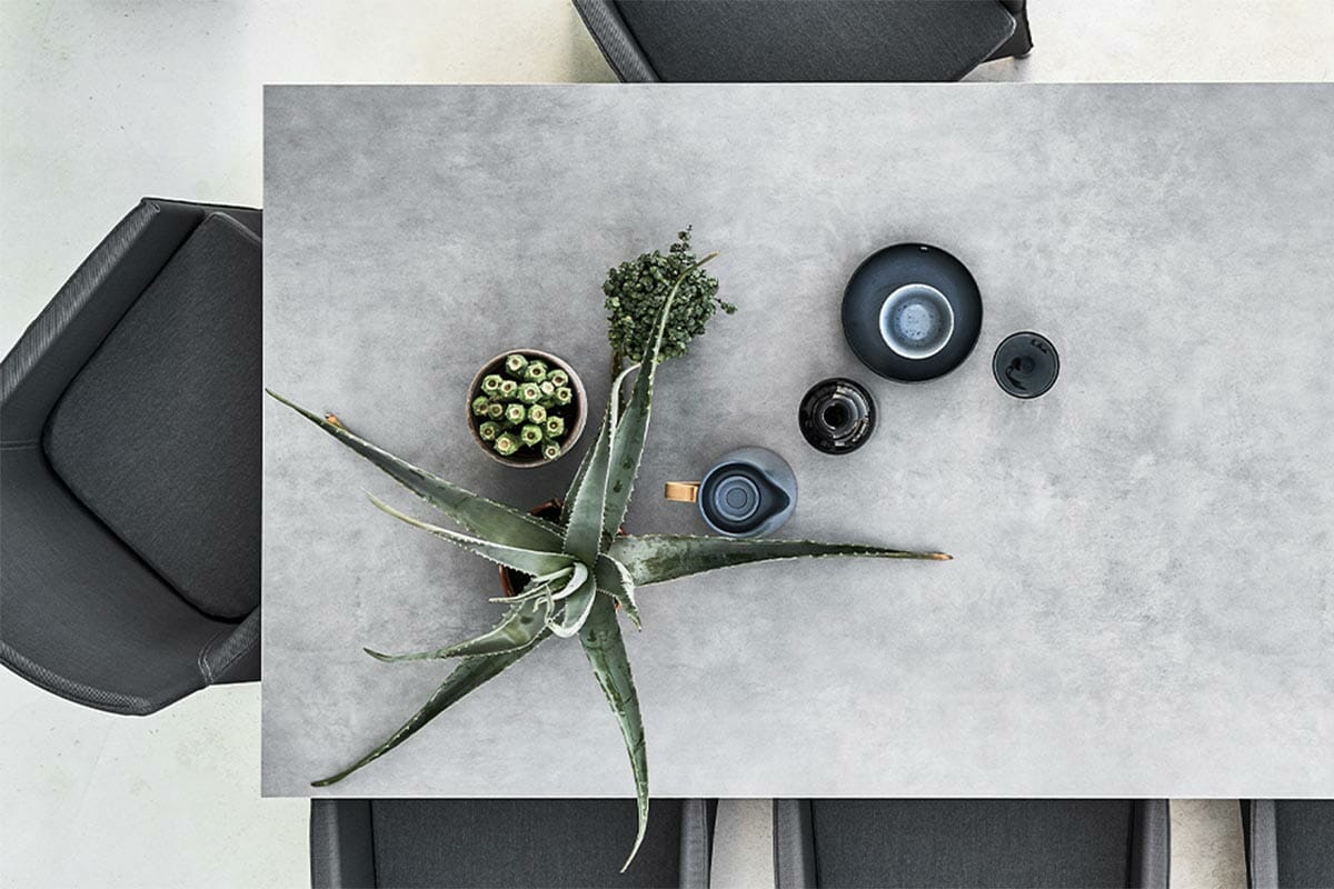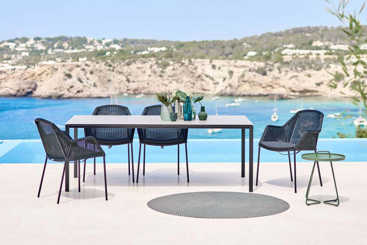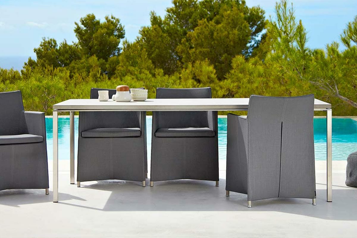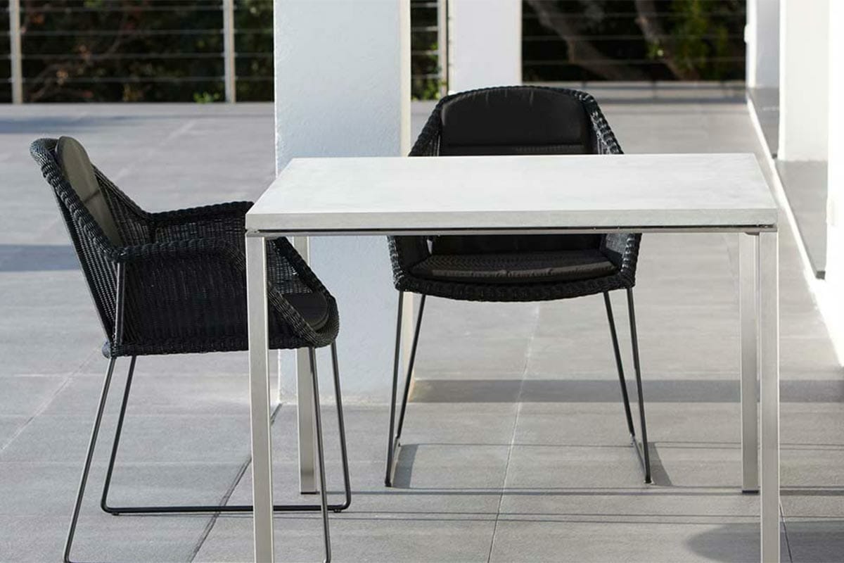 Für perfekte Dinner unter freiem Himmel.Der minimalistische Pure-Tisch wurde vom dänischen Designerpaar Foersom & Hiort-Lorenzen MDD entworfen. Die Tischplatte ist aus Keramik hergestellt, der schlichte und stilvolle Rahmen wird in Edelstahl bzw. pulverlackiertem Aluminium in Lava-Grau oder Weiß angeboten. Die Tischplatte ist ein hundertprozentiges Naturprodukt und wird in Beton-Grau, Basalt, Grafit oder als Fliesenausführung in meliertem Grafit angeboten. Diese Kombination erzeugt ein leichtes und fast schwebendes Design. Der Pure-Tisch ist leicht zu pflegen, kratzerfrei und kann mit einem feuchten Tuch abgerieben werden. Der Tisch ist UV-beständig und kann daher bei jeder Witterung im Freien stehen. Der minimalistische Cane-line Gartentisch Pure harmoniert perfekt zu den Breeze Stühlen. Sie erhalten den Tisch in zwei Größen 200 x 100 cm oder 100 x 100 cm.