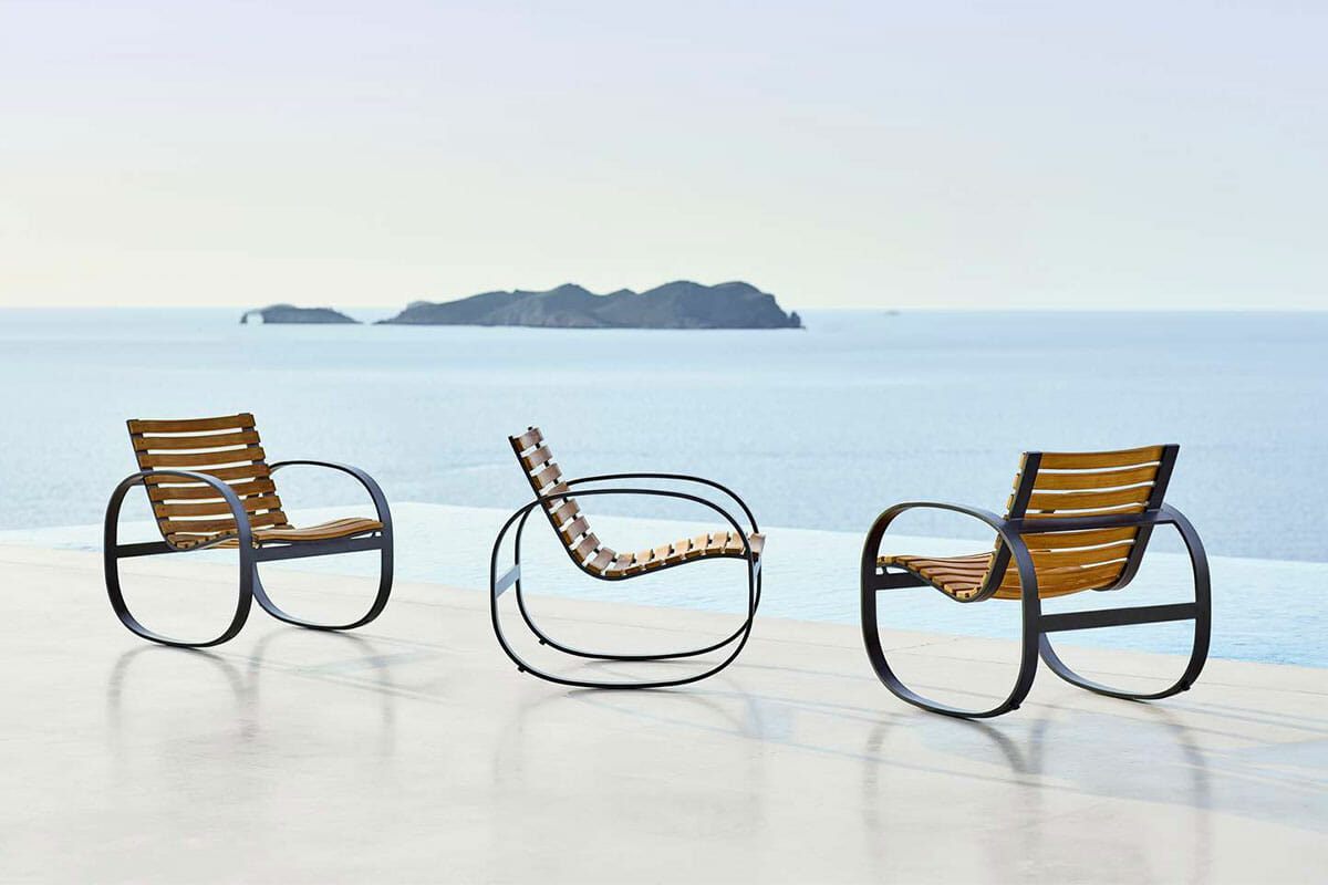 Für entspannende Momente.Der Parc Schaukelstuhl ist ein raffiniertes und exklusives Designermöbel aus Teak, das von dem dänischen Designer-Duo Foersom & Hiort-Lorenzen MDD entwickelt wurde. Der Stuhl passt sich der Körperform an und verleiht ein hohes Maβ an Komfort. Aufgrund der natürlichen Materialien und des exklusiven Designs passen die Parc-Produkte optimal in jeden Bereich – Outdoor und auch Indoor. Der Parc Schaukelstuhl besteht aus zertifiziertem Teakholz und pulverlackiertem Aluminium. Breite 63 cm, Höhe 75 cm, Tiefe 78 cm, Sitzhöhe 39 cm.