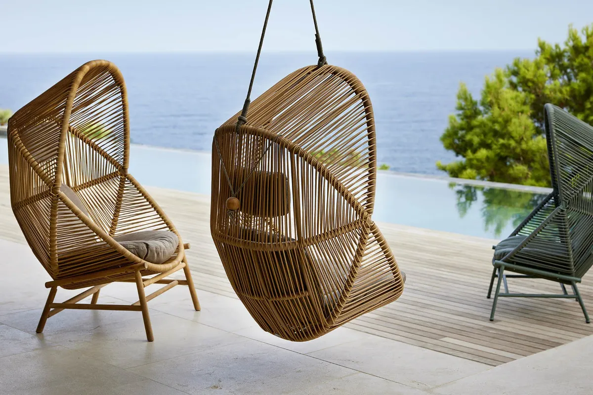 Komfort für Ihre Outdoor-OaseDer Hive Sessel von Cane-line ist ein echtes Design-Statement für den Outdoorbereich. Hive besticht durch seine skulpturale Bienenstock-Silhouette und das offene, luftige Flechtmuster aus wetterbeständigem Cane-line Weave®. Ob als Hängesessel oder auf einem stabilen Gestell aus Teak oder Aluminium – Hive schafft einen stilvollen Rückzugsort für Entspannung, Fokus und Ruhe. Die komfortablen Polster mit QuickDry & Airflow-System und das verstellbare Nackenkissen sorgen für maximalen Komfort – selbst kurz nach einem Regenschauer.