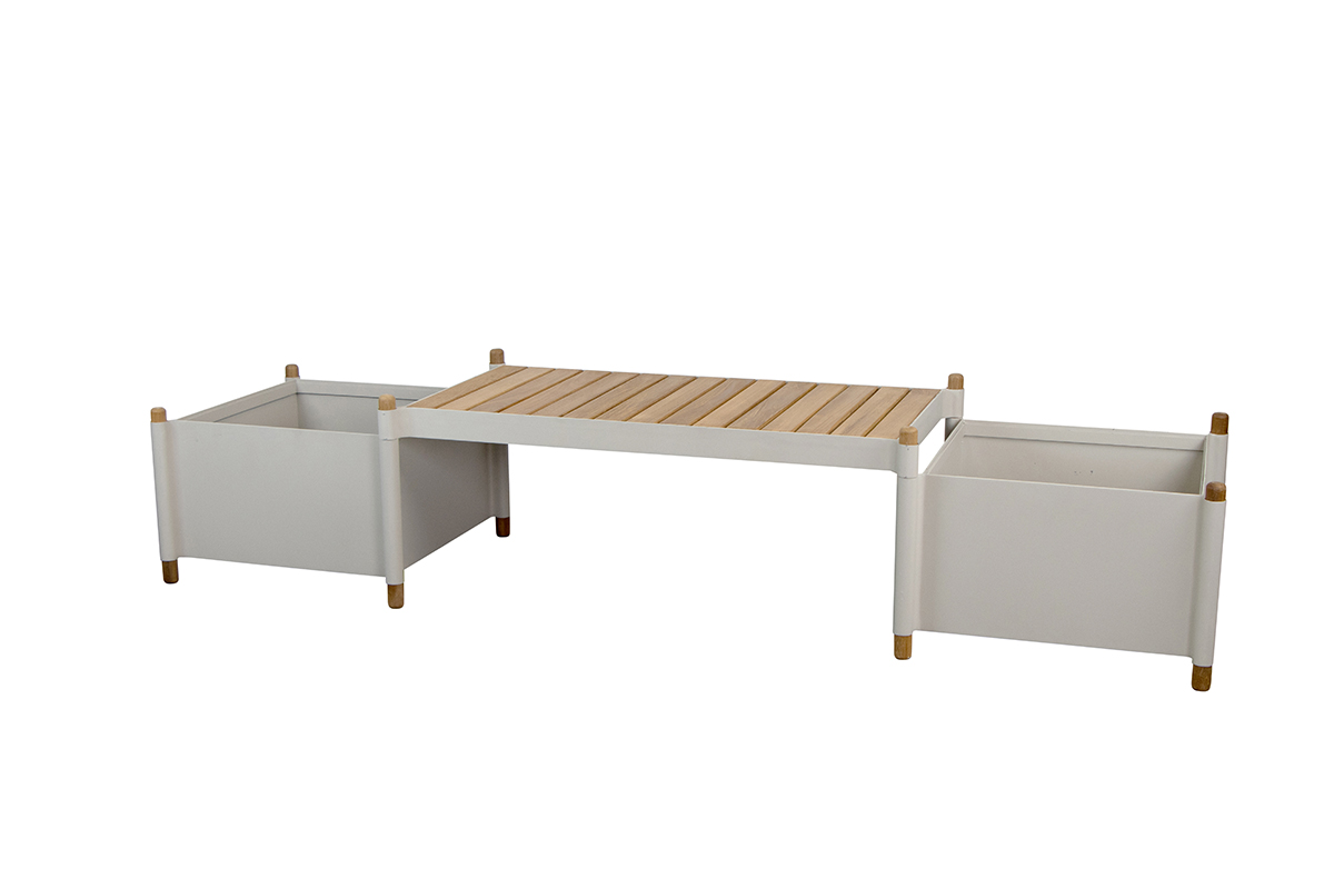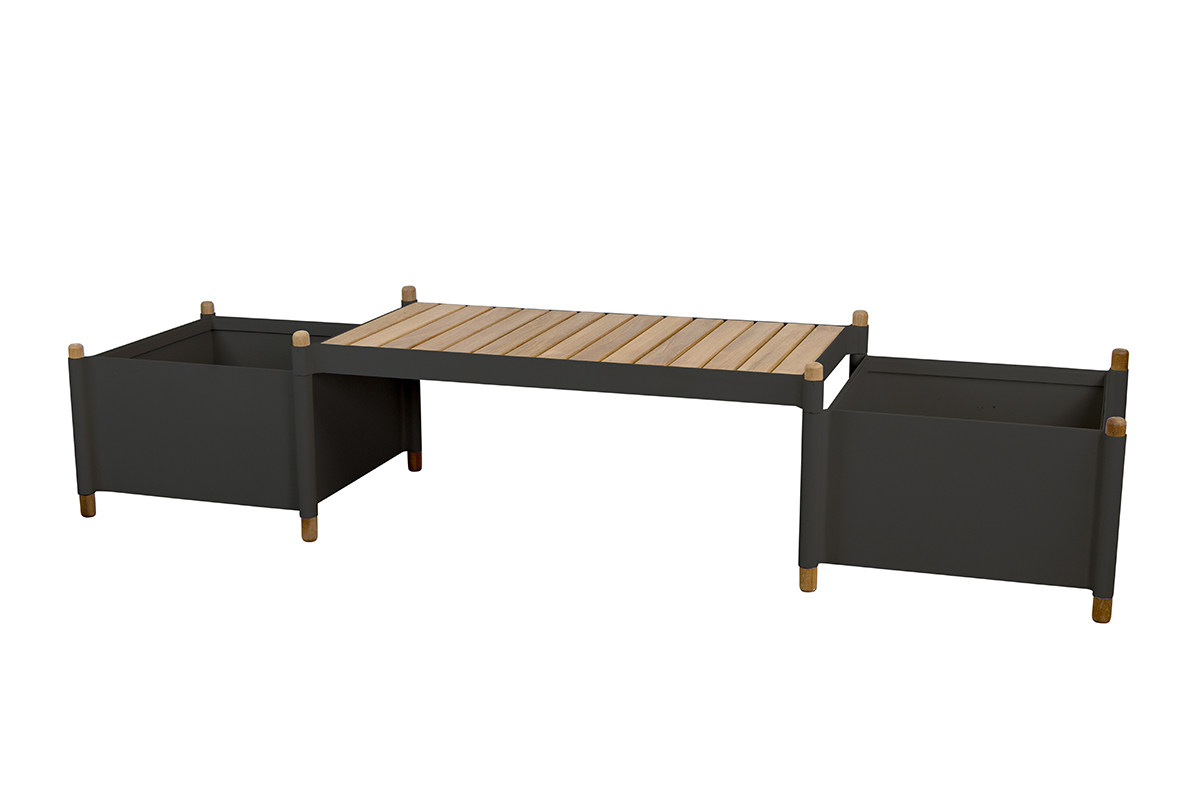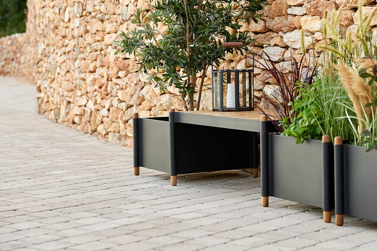 Perfekt zum EntspannenMit der Kombination aus Gartenbank und Pflanzgefäß schaffen Sie eine harmonische Oase in Ihrem Garten. Hier können Sie zur Ruhe kommen, Energie tanken und in die Natur eintauchen. Wahlweise Teak/Aluminium sand oder Teak/Aluminium grey, Gesamtbreite 215 cm, Höhe 35 cm