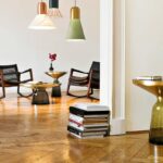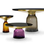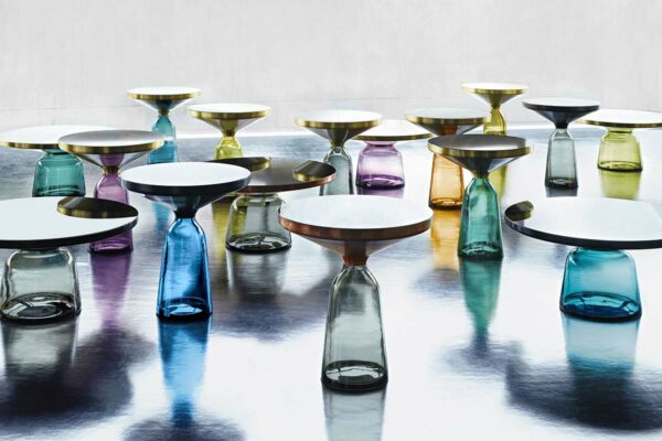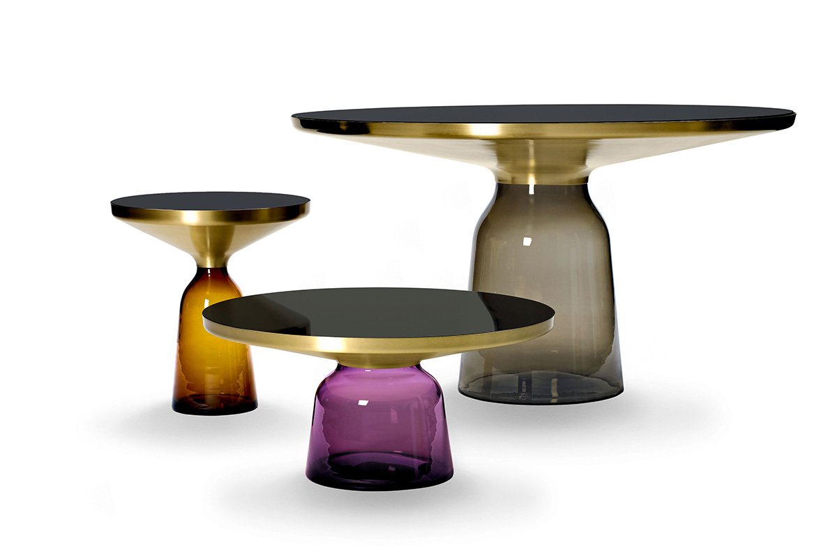 Charakterstarke ElementeDer Bell Table von Sebastian Herkner stellt den gewohnten Umgang mit Materialien auf den Kopf und überrascht unsere Wahrnehmung: Hier wird der Tischfuß zur prägnanten, farbig-transparenten Glasform im Raum, auf dem ein Metallkörper aufliegt. Das Glas verhilft dem an sich schweren Metall zu schwebender Leichtigkeit. Der traditionell in eine Holzform geblasene Glasfuß und der gedrückte Metallkörper treten in einen spannenden Kontrast und bilden doch formal eine harmonische Einheit, die an den eleganten Schwung einer Glocke erinnert. Mit ihren reizvollen Reflexionen und Materialkontrasten werden die Beistelltische zu charakterstarken Elementen im Wohnbereich.