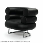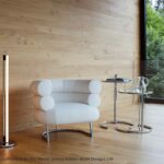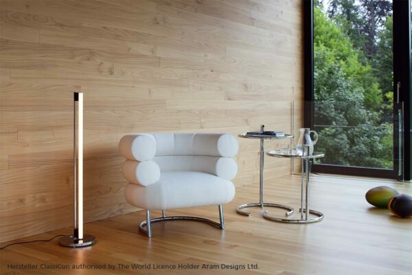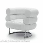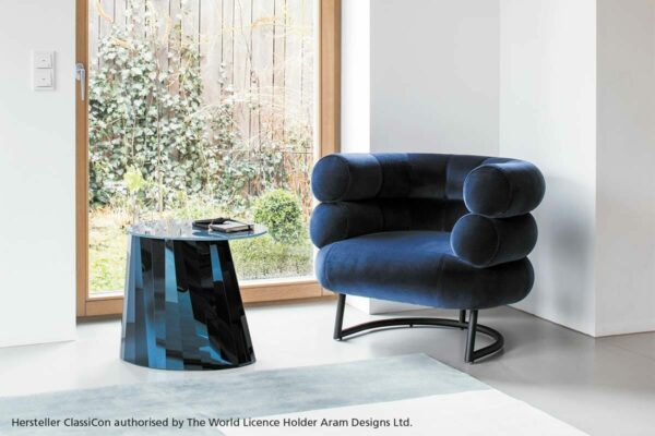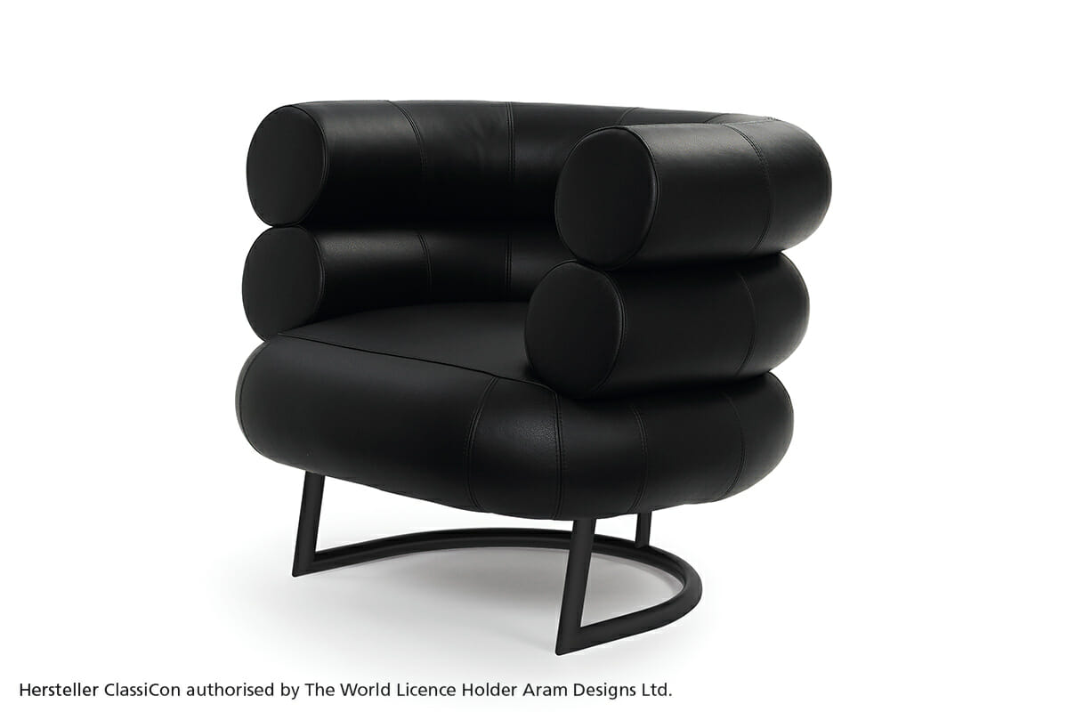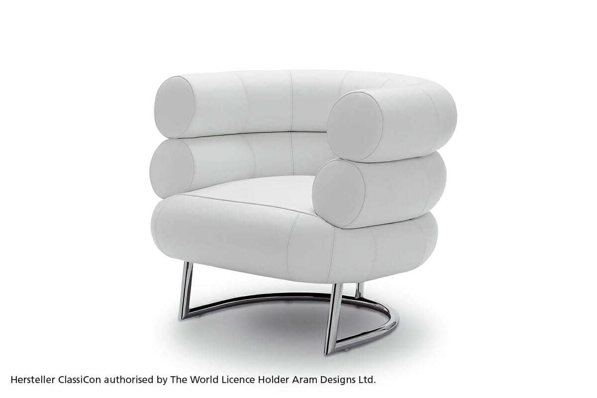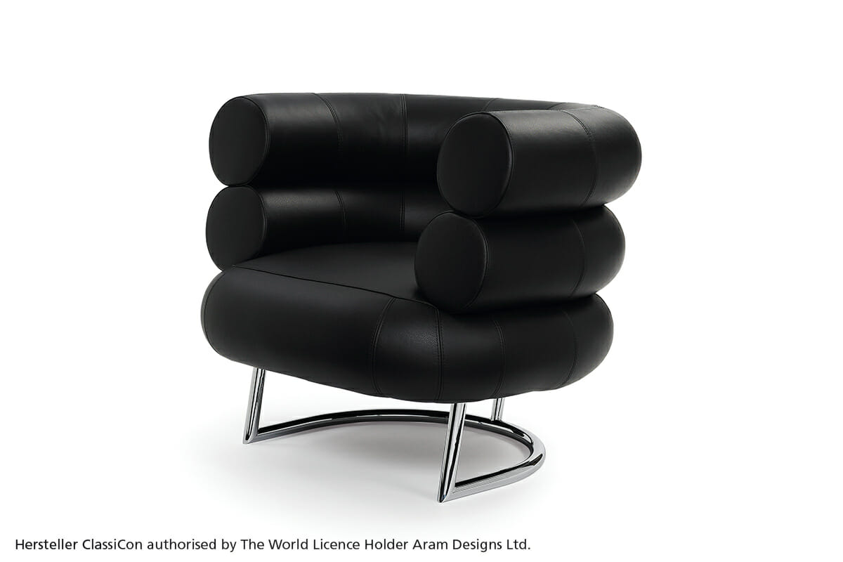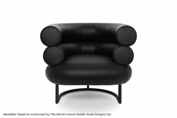 Der Klassiker.Bibendum ist eine singulare Erscheinung. Nirgendwo in der Designgeschichte wird man eine Sitzgelegenheit finden, die dieser gleicht. Trotz seiner Größe ist der Bibendum von bestechender Harmonie. Wie kein zweiter Sessel verbindet er majestätische Repräsentationswirkung mit Charme und Esprit. Eileen Gray unterstrich den Charakter ihres liebenswerten Salonlöwen mit augenzwinkernder Ironie, indem sie ihn nach dem Michelin-Reifenmännchen benannte, dessen Form der Sessel zitiert. Gestell aus verchromtem Stahlrohr. Sitz aus Buchenrahmen mit Gummigurten. Polsterung: Polyurethan mit Polyesterwatte. Bezug aus Stoff oder Leder.