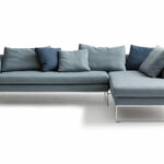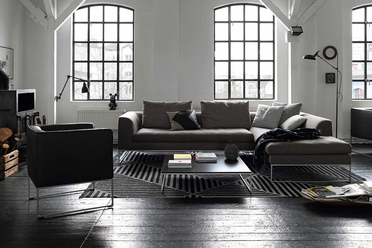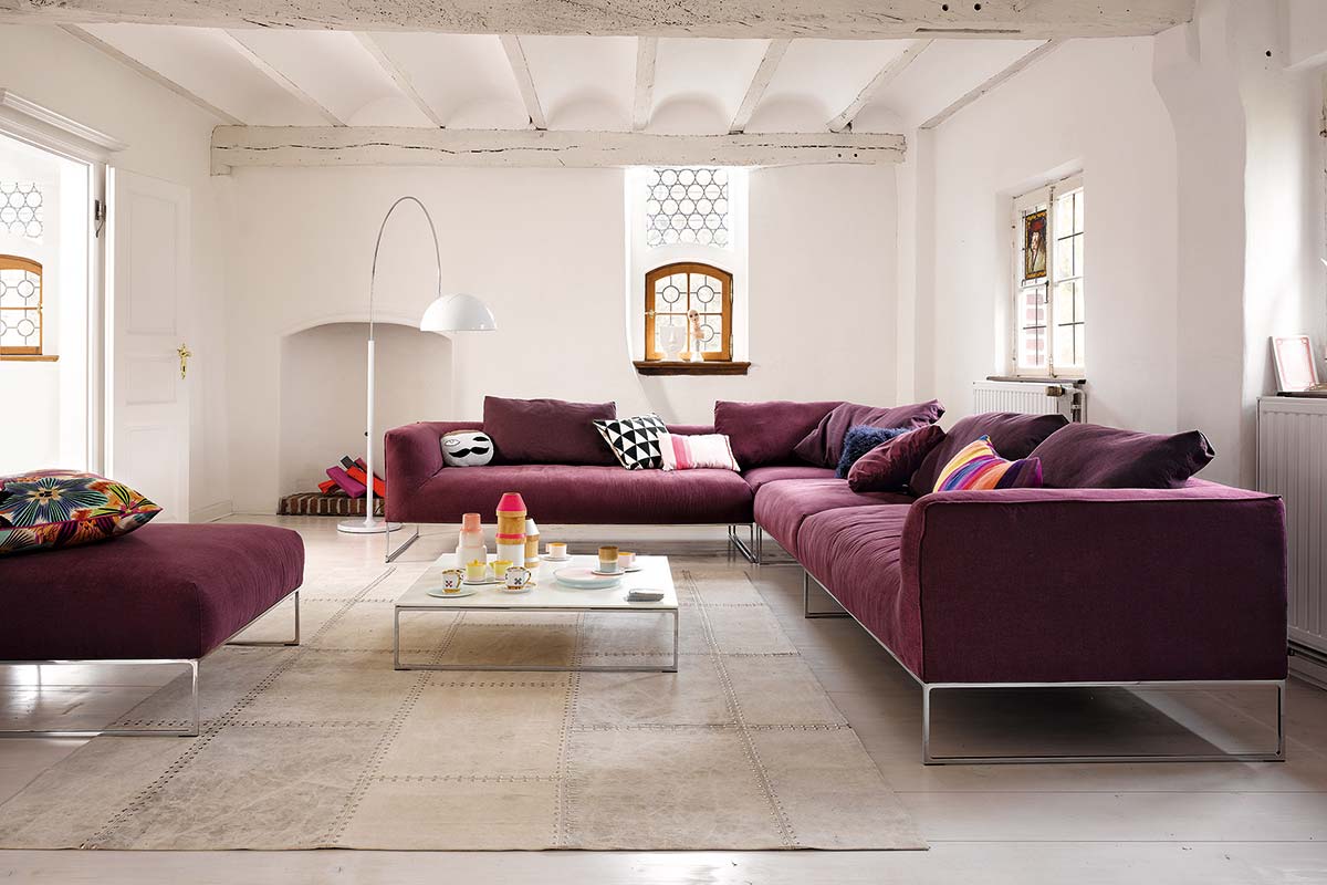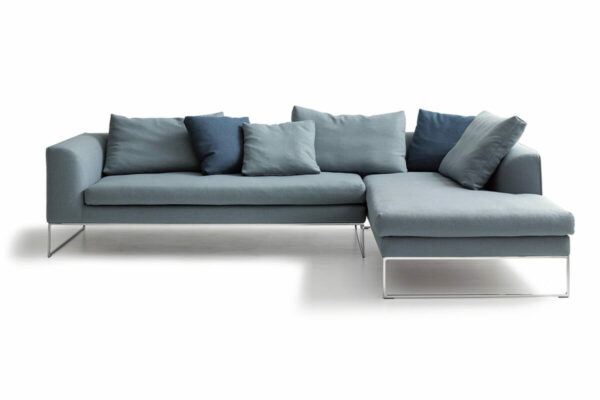Ein einladend bequemes Sofa.Außen hart, innen ganz weich: So lässt sich Mell Lounge mit losen Kissen am besten beschreiben. Die neuen, weichen Kissen im Sitzbereich, die auch als durchgehende Variante erhältlich sind, bilden einen kuscheligen Gegensatz zu den gewohnt strengen Außenflächen. Das Ganze steht – oder viel mehr schwebt – auf einem filigranen Metallgestell, das wahlweise verchromt oder lackiert ist.