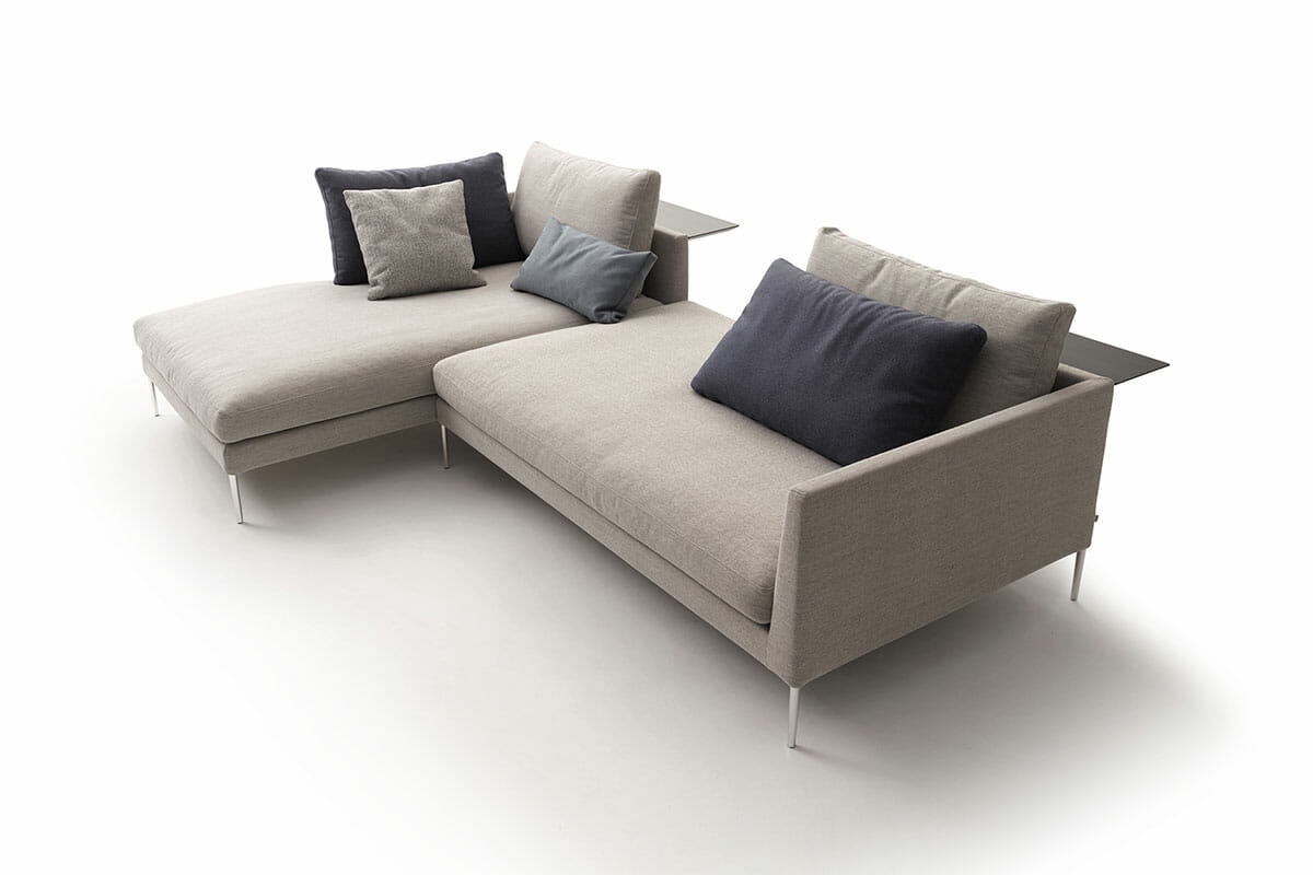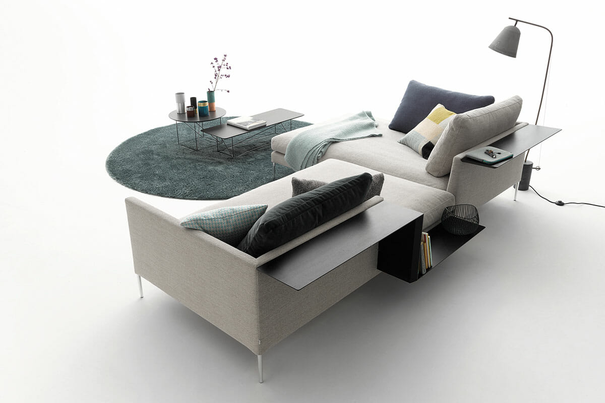 Ein Sofa für die beste Zeit des Tages. Und des Abends.Seriöses Sitzen: Fehlanzeige. Pilotis möchte bewohnt werden. Das ist der Grund für die tiefen Sitz- und Liegeelemente – schräg oder gerade – die mehr als offen für eine spielerische Verbindung mit Tischen und Regalen sind. Der optionale Rückenaufsatz erhöht die Lehne und verstärkt eine der besten Eigenschaften von Pilotis: ein verdammt guter Rückzugsort zu sein.
