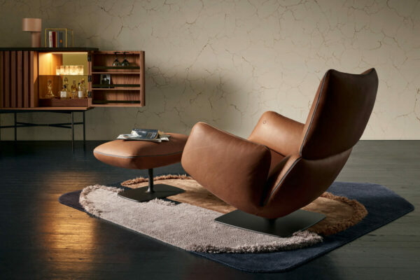 Die neue Form der Gastfreundschaft.Alles an dem COR Jalis Lounge Sessel heißt seinen Besitzer willkommen: von den weichen Sitzpolstern über die sanft nach oben gefalteten Seitenlehnen bis zum sachte gebogenen Rücken. Dynamisch jung in seiner Designsprache ist Jalis Lounge die moderne Version eines Ruhesessels. Mit optisch betonten Konturen und fester Polsterung wirkt Jalis Lounge ebenso elegant wie gemütlich. In der Ausführung mit drehbarem Tellerfuß verfügt er über eine unsichtbar eingebaute Kippmechanik, die die Sitzschale sanft nach hinten neigt. Halt sowie Bequemlichkeit garantiert der um 20 Grad neigbare Kopfbereich. Gestellvarianten: fixes Drahtgestell oder drehbarer Tellerfuß. Lackierbar in allen Farben. Hocker optional.