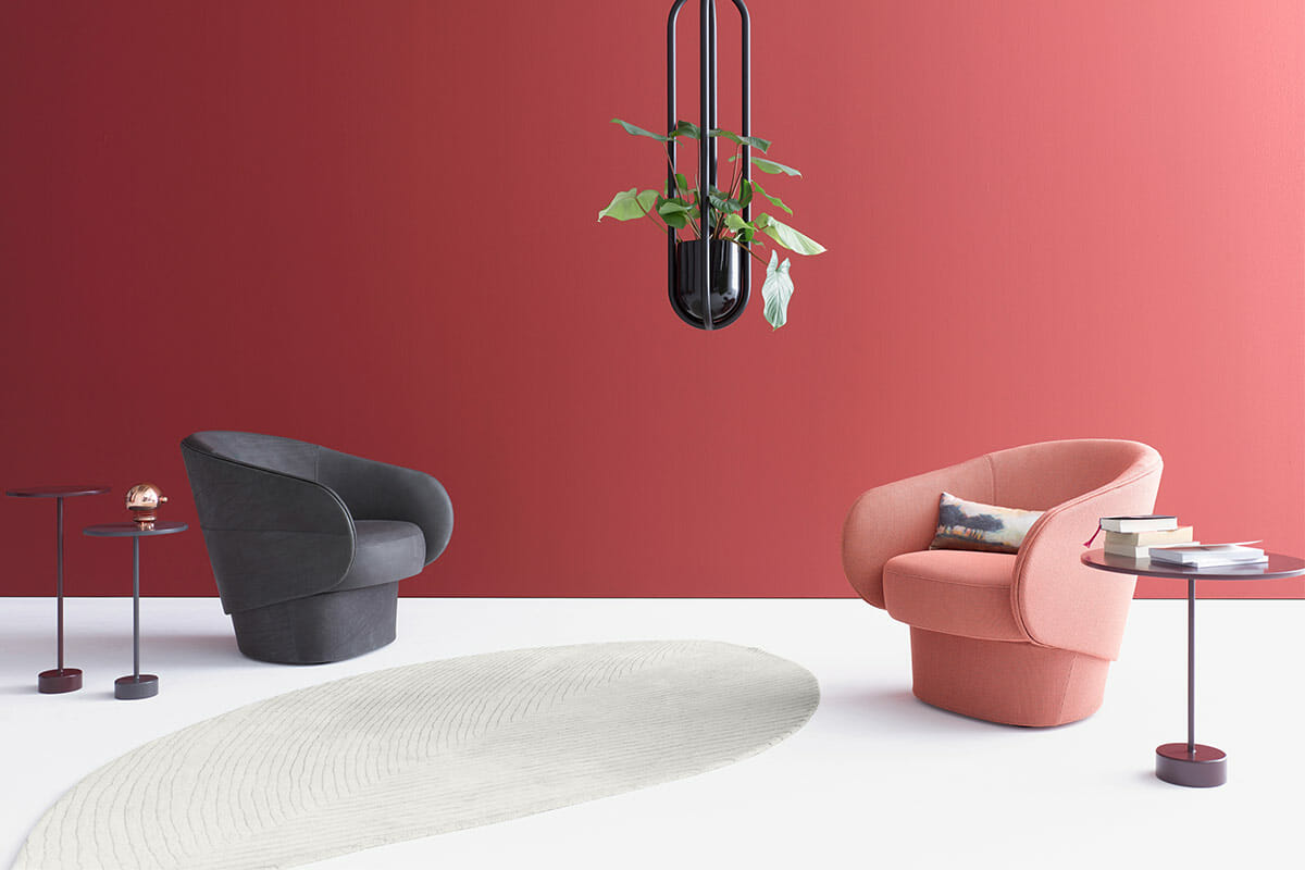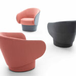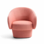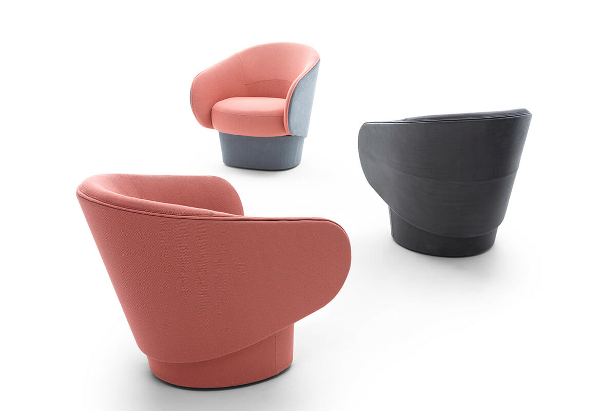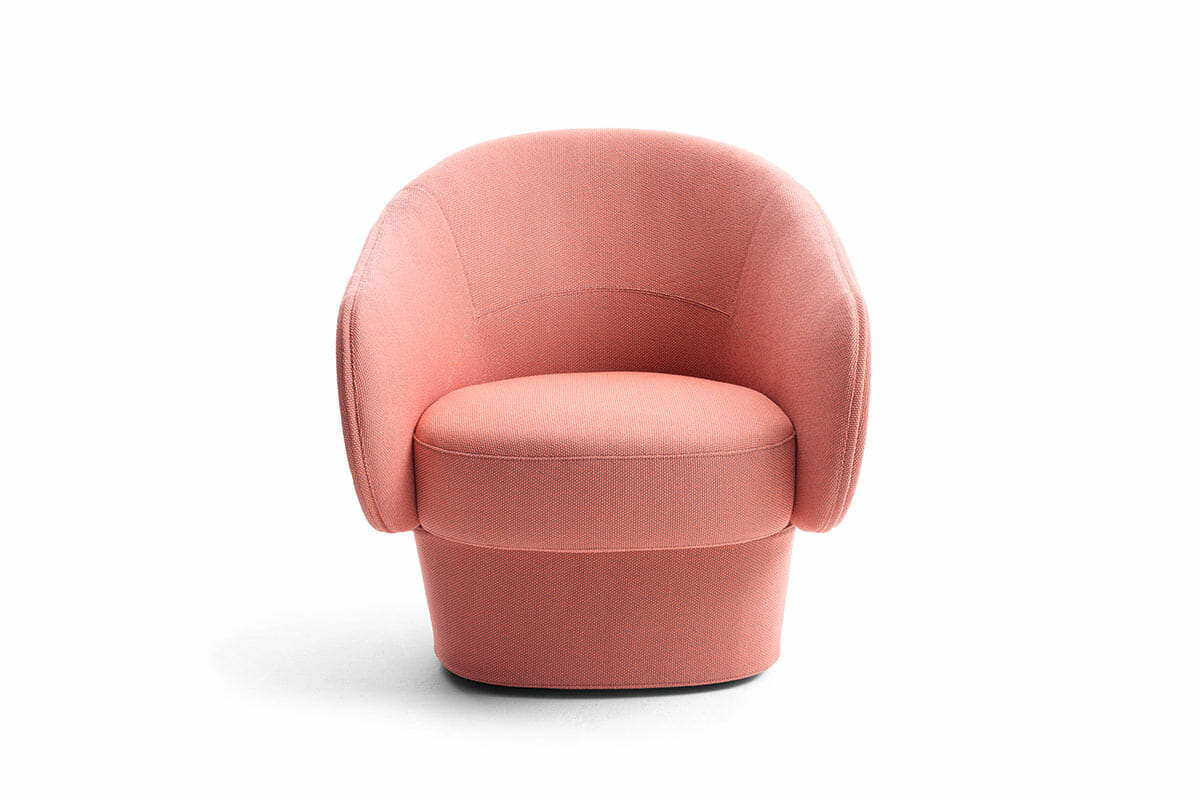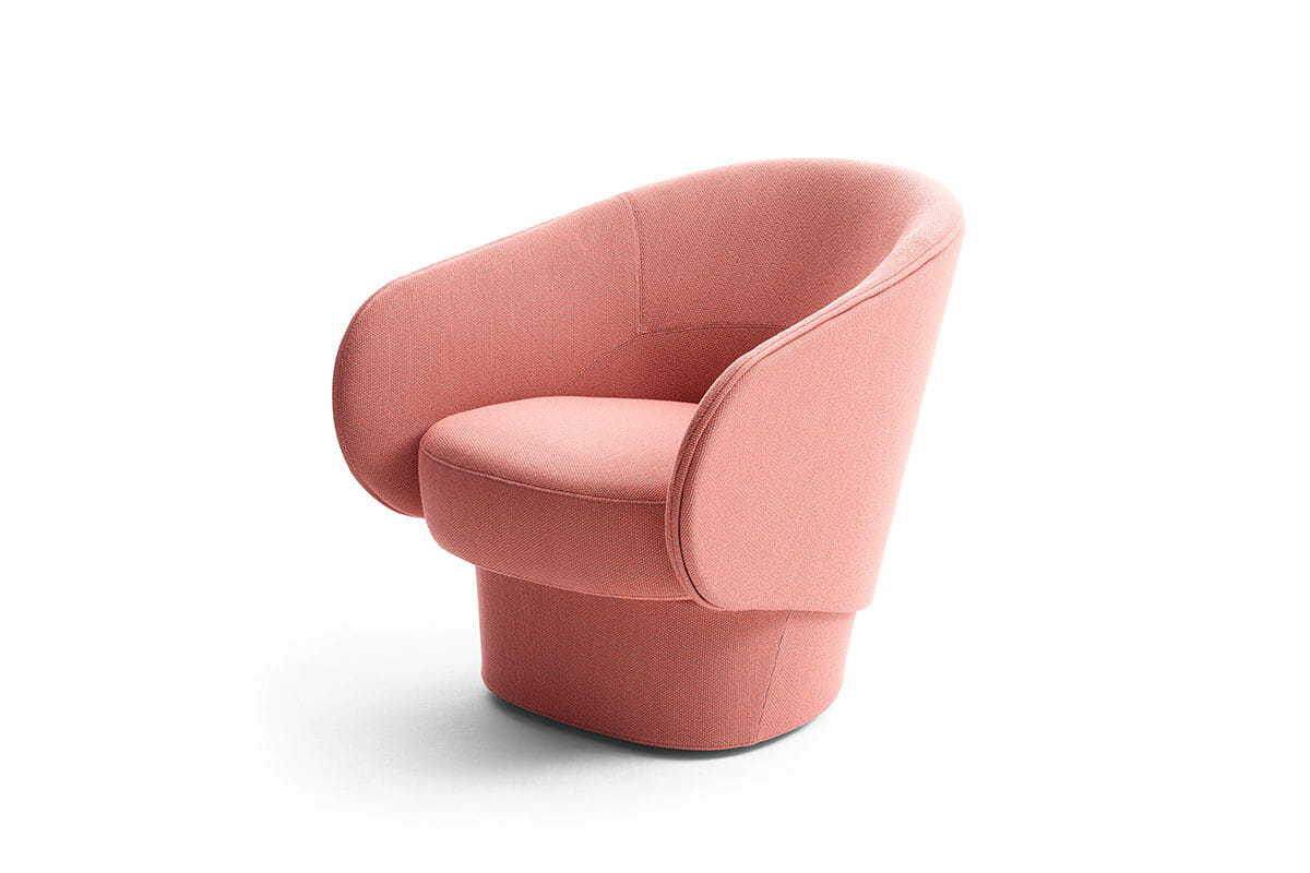 Leichter Sessel mit bestem Sitzkomfort„Komm in meine Arme“ scheint dieser Sessel zu sagen, dessen Seitenlehnen sich dem Betrachter sanft geschwungen entgegenstrecken. Entsprechend geborgen fühlt man sich, wenn man sich auf ihm niederlässt. Dafür sorgen zum einen die großzügige Sitzfläche mit dem weich gewölbten Sitzkissen und der hohe Rücken, dessen Schräge die Wirbelsäule in die perfekte Aufrecht-Haltung bringt. Zum anderen hat Designer Uwe Fischer das Polstermöbel mit einem kompakten Sockel versehen, der – wahlweise auf Gleitern oder einem Drehteller – Halt gibt. Überraschenderweise ist Roc gleichwohl so leicht, dass man ihn spielend im Raum bewegen kann – zur Sitzgruppe, zur Leselampe, zum Fenster oder auch nur, um ihn mal von seiner hübschen Kehrseite zu sehen.