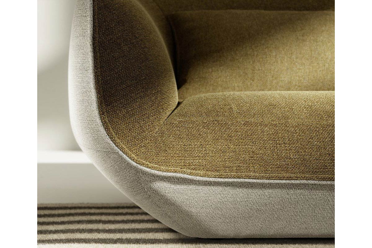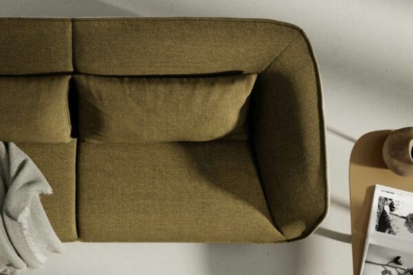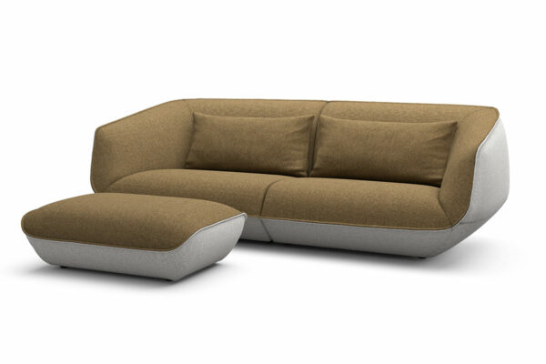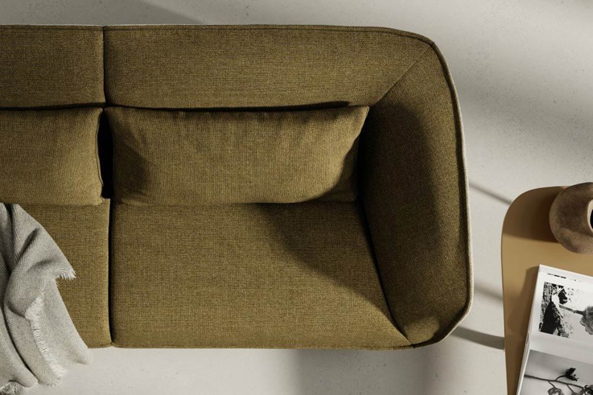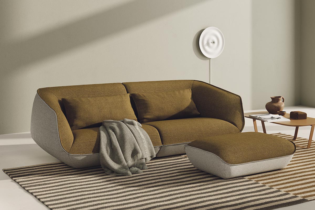 Tschüss Alltag, hallo Geborgenheit‚Nook‘ bedeutet auf deutsch ‚Schlupfwinkel‘ und sagt eigentlich schon alles über dieses Sofa mit einem Keder, in dessen Tiefe man aufs Schönste versinken kann – gehalten vom hohen Rücken, ansteigenden Armlehnen, stützenden Lendenkissen und einem im Inneren verborgenen Lattenrost. Jetzt nur noch die Füße auf dem dazugehörigen Hocker ablegen und die Siebensachen auf dem Beistelltisch deponieren, schon ist die Nestwärme vollkommen.