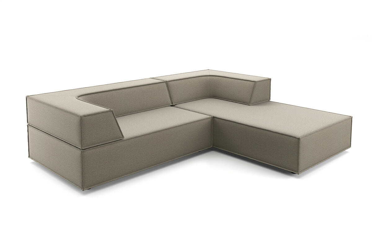 Flexibel wie das Leben und der ganz private WohnstilFlexibel wie das Leben und der ganz private Wohnstil: Vorzugskombination links oder rechts bestehend aus einem Sitzelement 200 cm und einem Sitzelement 150 cm sowie einem großen und einem kleinen aufgelegtem Eckrücken. Bezug Stoff 8143 (Samtweicher Chenille, Farbe taupe, Voluminöser, sehr dicht gewebter Polsterstoff, der mit seiner changierenden, lebendigen Oberfläche stark an Velours erinnert. Dieser lässige Stoff überzeugt zudem durch seine hohe Strapazierfähigkeit und ist leicht zu pflegen)