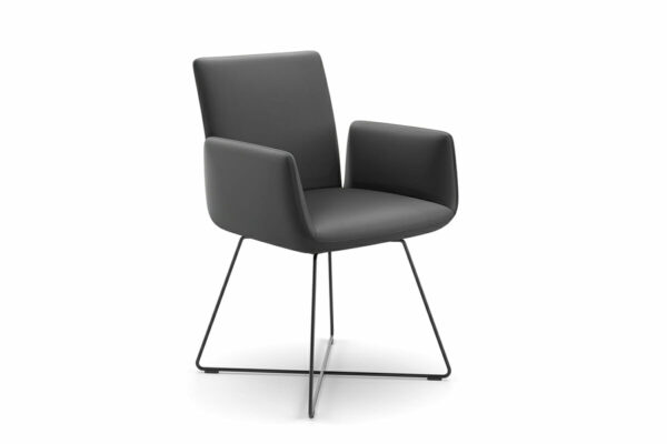 Ist das noch sitzen oder bereits schweben?Jalis ist vom orientalischen Wort „Dschalies“ = Gastfreundschaft inspiriert. Mit seinen bequemen Lederpolstern und einer sanft schwingenden Rückenlehne ist dieser Stuhl nicht nur gast-, sondern auch rückenfreundlich. Jalis Stuhl mit hohem Rücken und Armlehnen als Vorzugskombination 5+1.