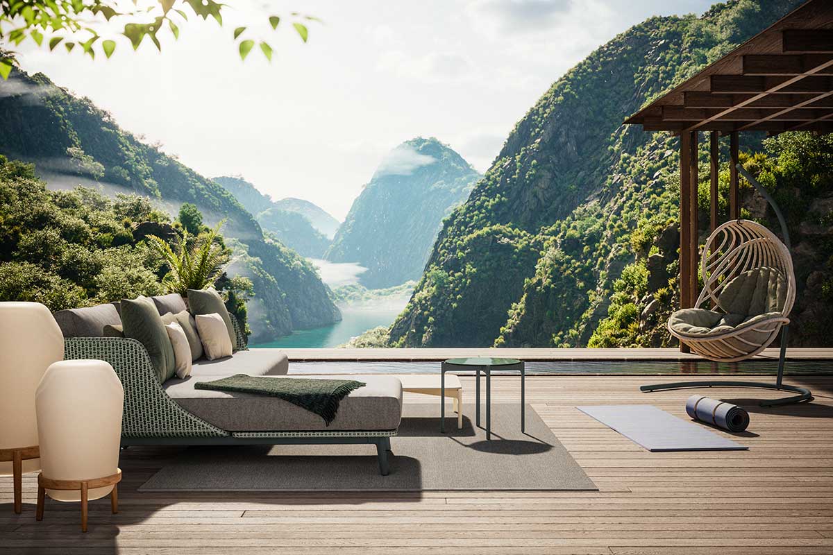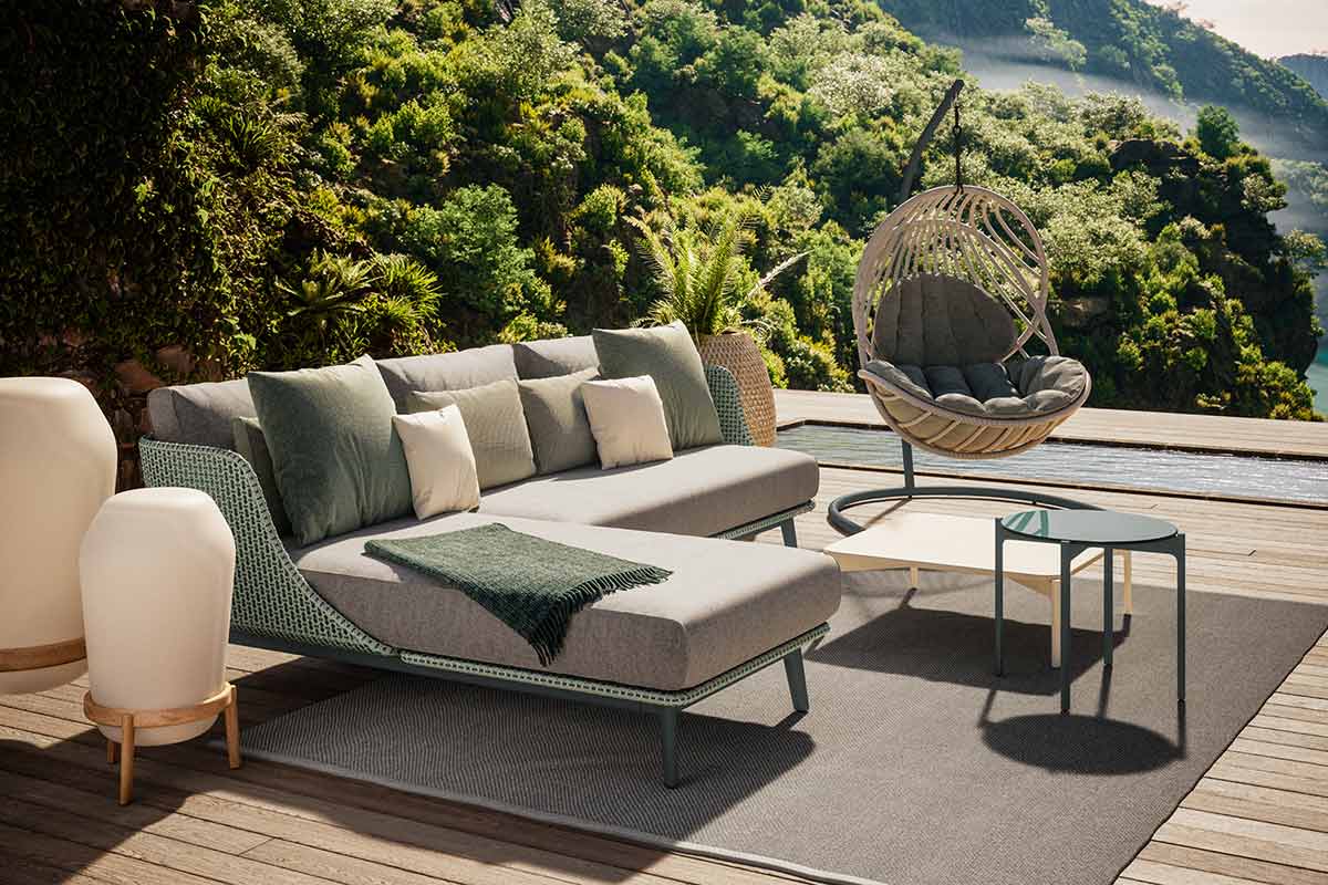 Inspiriert von der Form historischer Alkoven, transportierte Sebastian Herkner die Idee des Rückzugsraums mit MBARQ ins Freie. Die tiefen Sitzflächen und hohen Rückenlehnen bieten nicht nur Komfort, sondern auch Privatsphäre. Die modulare Kollektion verleiht offenen Außenräumen Struktur und definiert Bereiche, in denen man sich sowohl entspannen und unterhalten, als auch konzentriert arbeiten kann. Durch die organische Form, die lebendigen Farben und die dreiachsige Flechtstruktur aus DEDON-Faser verleiht MBARQ jeder Umgebung einen verwunschenen Touch und lädt zum Träumen ein.