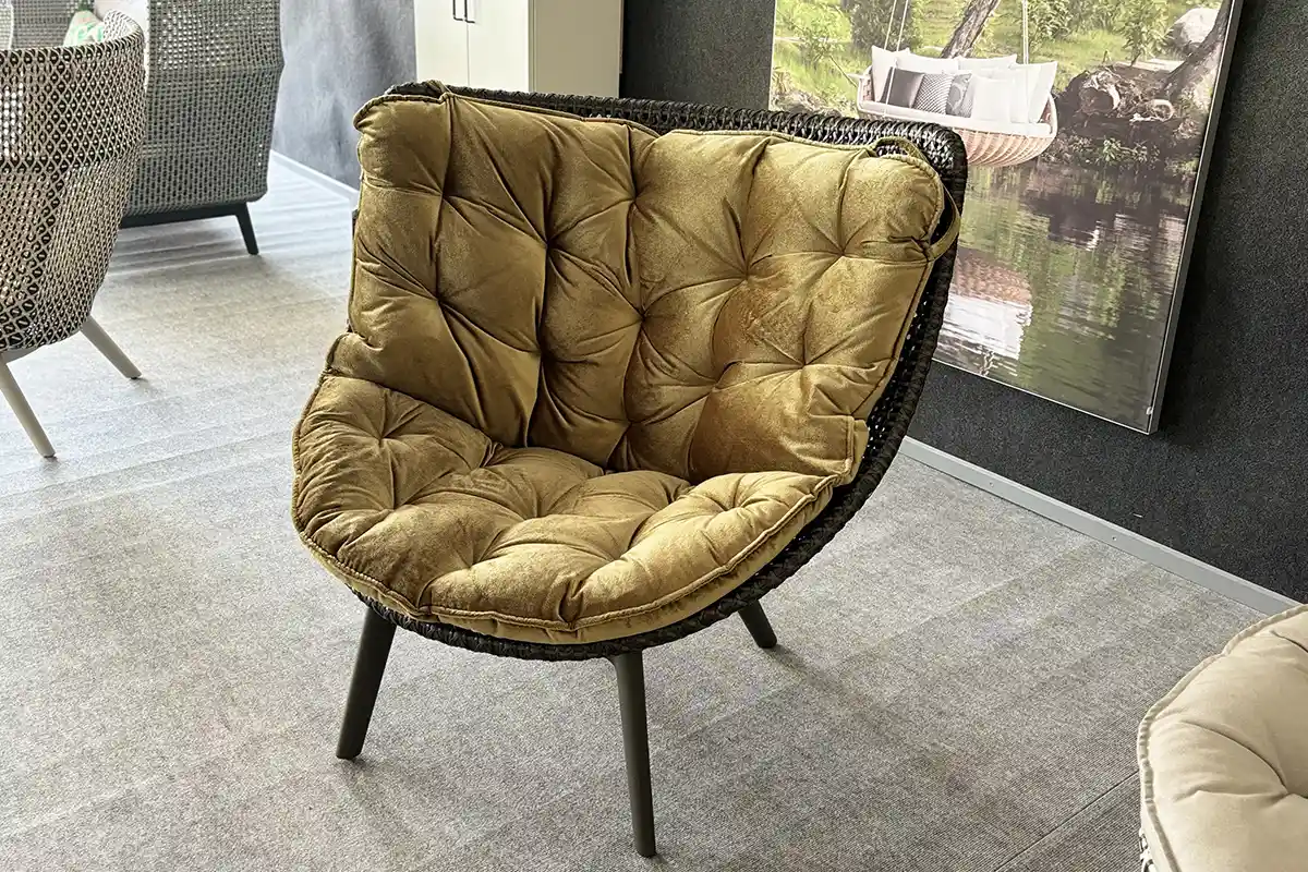 Ausführung: Gestell Black Pepper 317, Geflecht Arabica 126, Polster Cat. E Farbe Olio 823 (WB 42653)