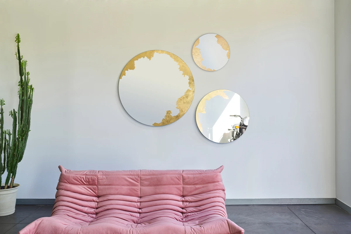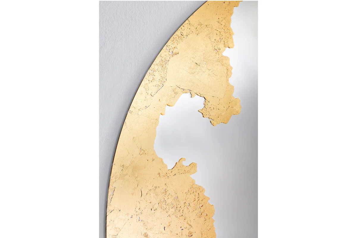 Zugleich robust und fein.Der Spiegel Ornato von Deknudt Mirrors ist ein beeindruckendes Beispiel meisterhafter Handwerkskunst und verleiht jedem Raum eine edle Note. Der Name Ornato, was „stark dekoriert“ bedeutet, spiegelt perfekt die kunstvolle Gestaltung dieses Spiegels wider. Die handapplizierten goldfarbigen Metallblätter formen ein natürliches Muster, das jeden Spiegel zu einem einzigartigen Kunstwerk macht. Jedes Stück ist ein Unikat.