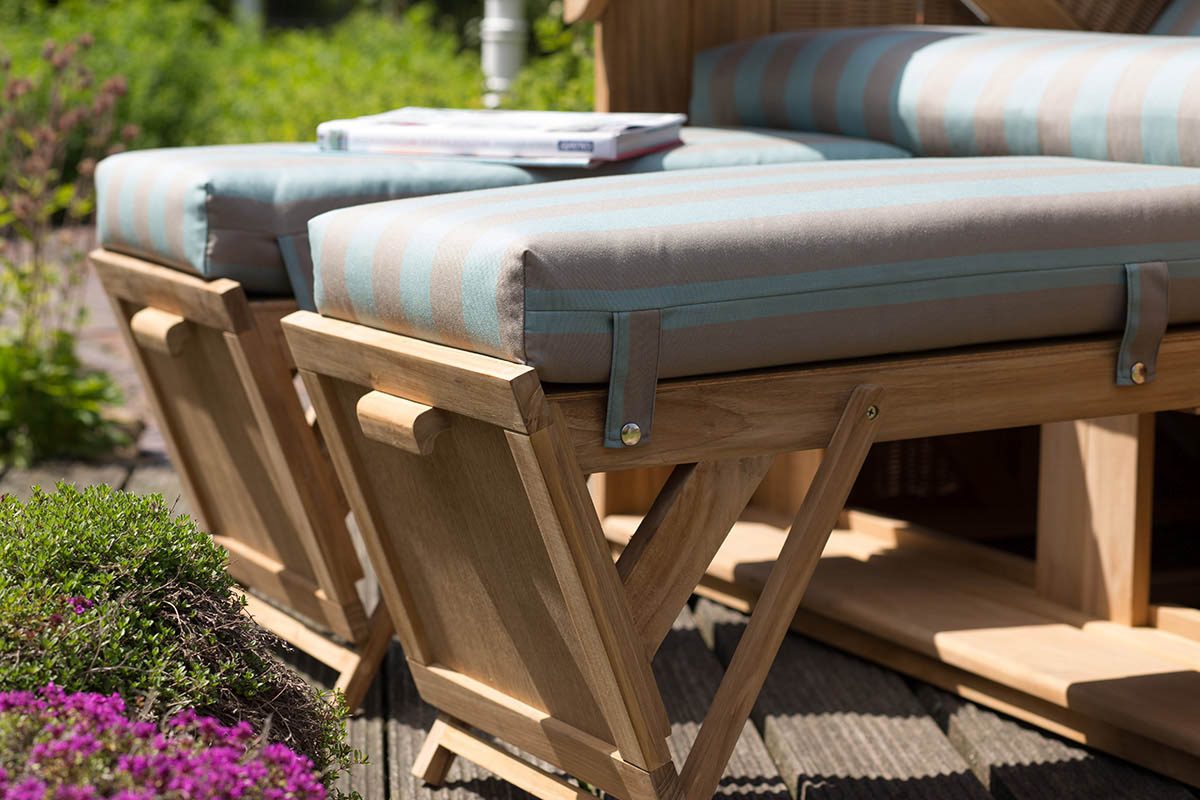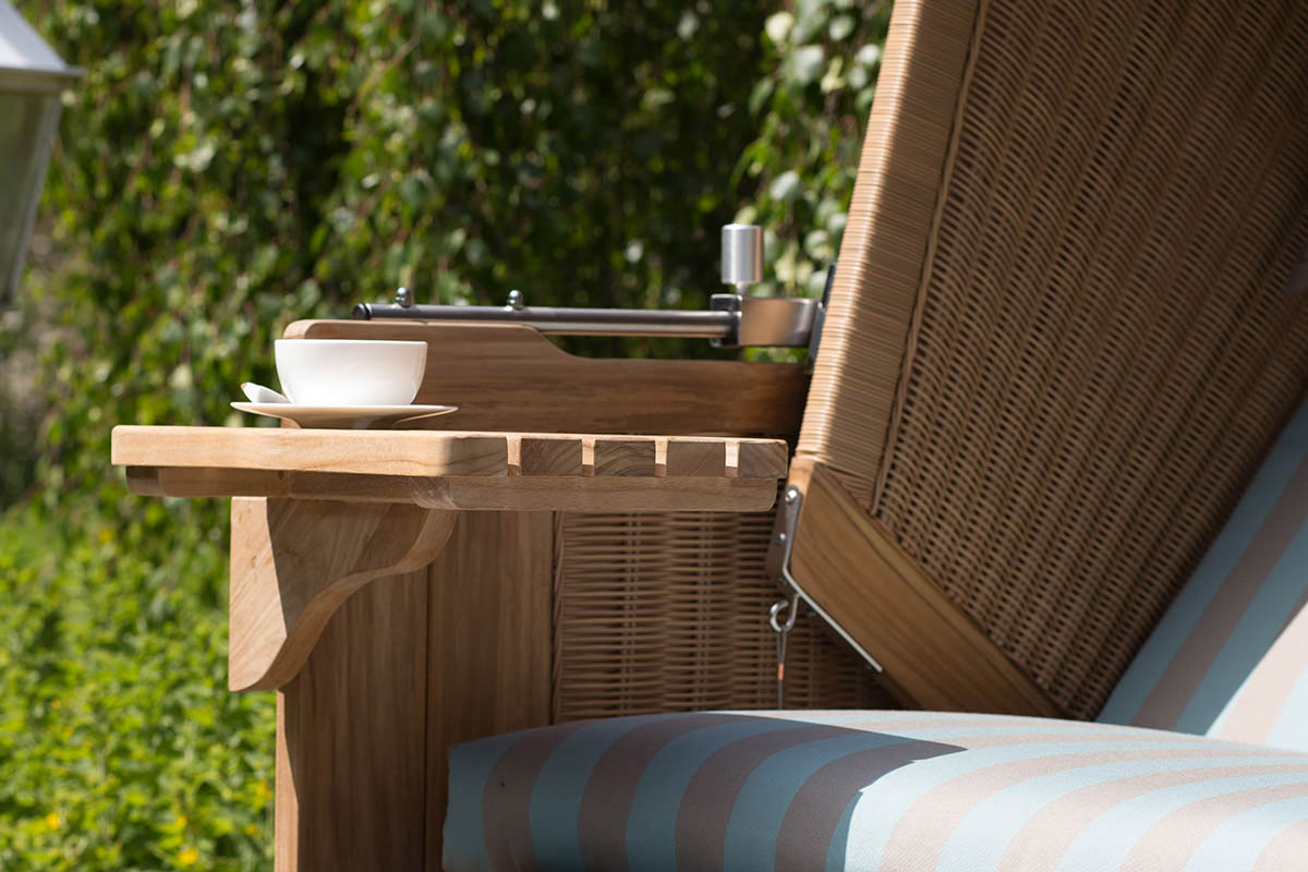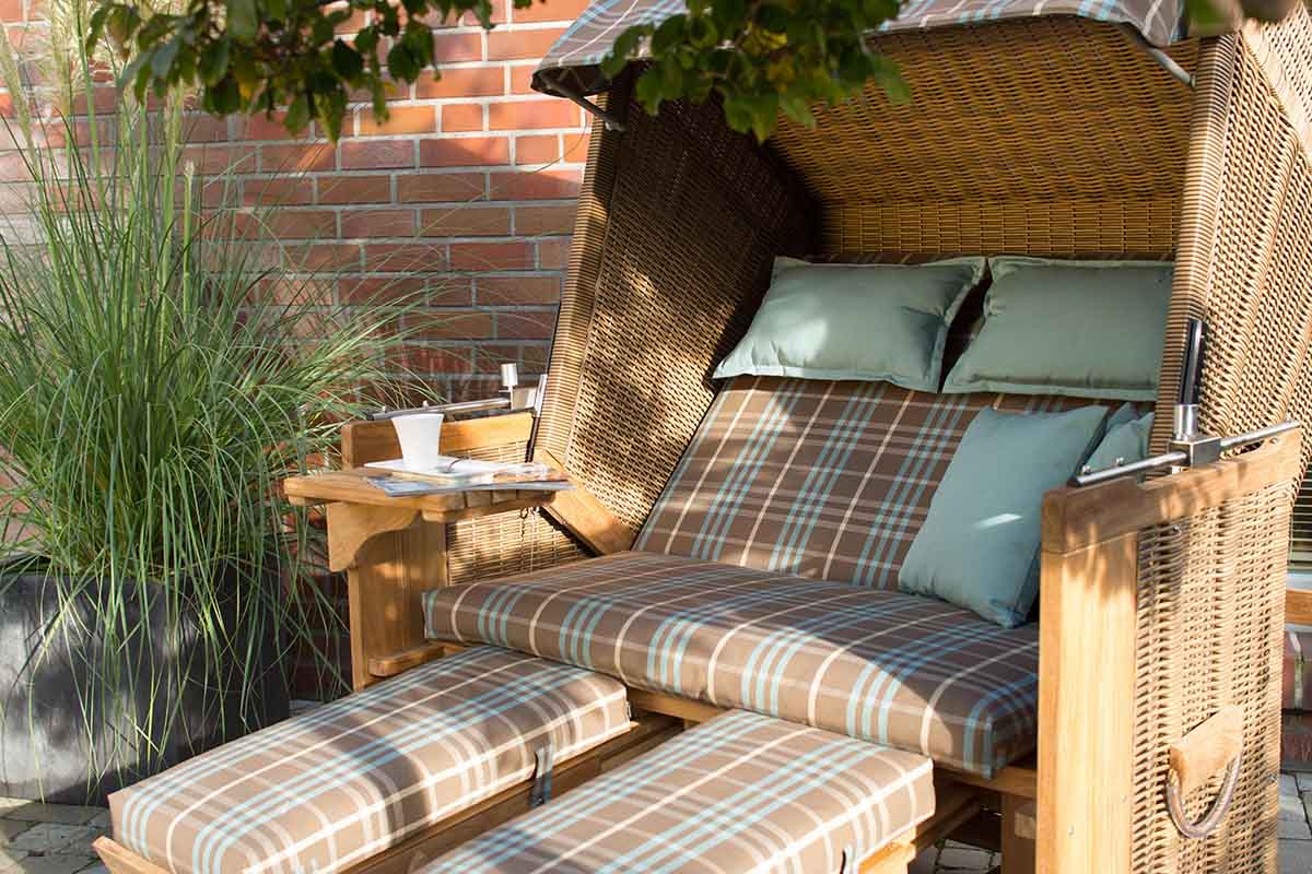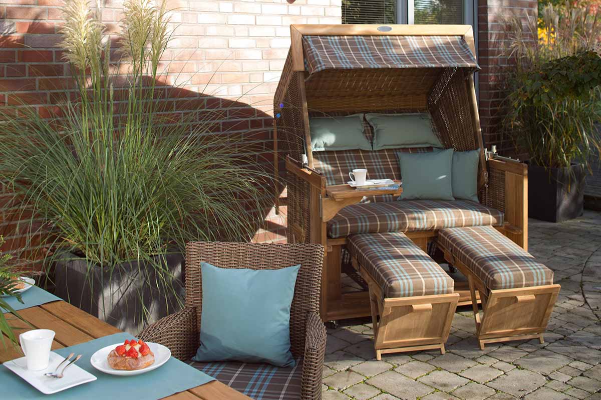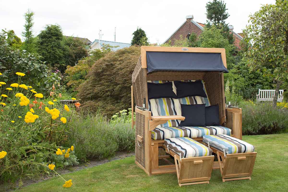Einzigartiger Sitzkomfort.Mit dem deVries Pure Friesland Strandkorb holen Sie sich Urlaubsgefühle nach Hause. Ihre wohlverdiente Auszeit genießen Sie im Strandkorb auf der Terrasse, im Garten oder auf Ihrem Balkon. Nicht nur bei Hitze oder praller Sonne hat der Strandkorb Vorteile, sondern auch wenn die Tage wieder frischer werden ist es absolut entspannend im Strandkorb zu verweilen. Auf der Suche nach einem hochwertigen Strandkorb für Garten oder Terrasse führt kein Weg an deVries vorbei. Die attraktive Produktpalette des Herstellers umfasst neben den beliebten Strandkörben auch Teak- und Geflechtmöbel von höchster Qualität. Die Strandkörbe von DEVRIES sind sowohl außen als auch innen durchgeflochten und bieten somit ein besonderes Strandkorberlebnis. Die Kissenausstattungen können komplett entnommen werden. Viele unterschiedliche Stoffe, Dessins und Farben stehen bei der Wahl Ihrer individuellen Kissenausstattung zur Verfügung. Lassen Sie sich von unseren Experten beraten.