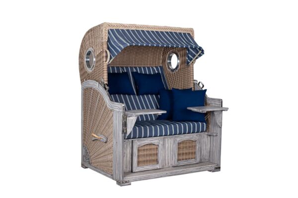 Der Strandkorb mit dem Bullauge.Mit dem deVries Strandkorb Seemöwe holen Sie sich Urlaubsgefühle nach Hause. Ihre wohlverdiente Auszeit genießen Sie im Strandkorb auf der Terrasse, im Garten oder auf Ihrem Balkon. Nicht nur bei Hitze oder praller Sonne hat der Strandkorb Vorteile, sondern auch wenn die Tage wieder frischer werden ist es absolut entspannend im Strandkorb zu verweilen.