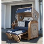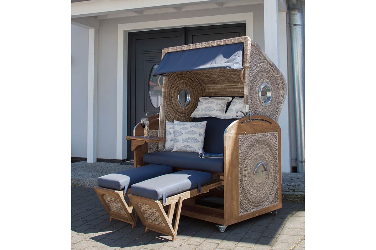 Der Strandkorb mit dem Bullauge.Mit dem deVries Sailor Strandkorb holen Sie sich Urlaubsgefühle nach Hause. Ihre wohlverdiente Auszeit genießen Sie im Strandkorb auf der Terrasse, im Garten oder auf Ihrem Balkon. Nicht nur bei Hitze oder praller Sonne hat der Strandkorb Vorteile, sondern auch wenn die Tage wieder frischer werden ist es absolut entspannend im Strandkorb zu verweilen. Auf der Suche nach einem hochwertigen Strandkorb für Garten oder Terrasse führt kein Weg an deVries vorbei. Die attraktive Produktpalette des Herstellers umfasst neben den beliebten Strandkörben auch Teak- und Geflechtmöbel von höchster Qualität. Die Strandkörbe von DEVRIES sind sowohl außen als auch innen durchgeflochten und bieten somit ein besonderes Strandkorberlebnis. Die Kissenausstattungen können komplett entnommen werden. Viele unterschiedliche Stoffe, Dessins und Farben stehen bei der Wahl Ihrer individuellen Kissenausstattung zur Verfügung. Lassen Sie sich von unseren Experten beraten.