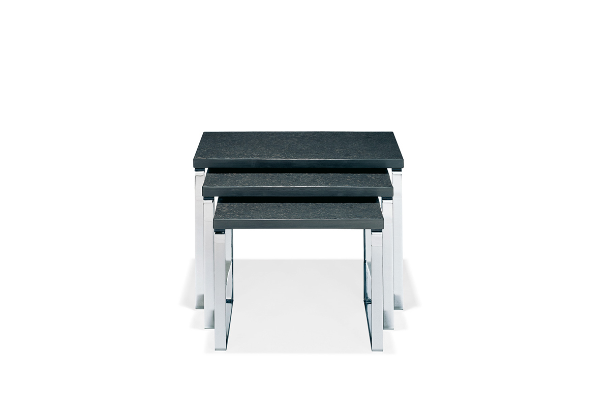 Unglaublich modern und dennoch absolut zeitlos.Das Modell Primus von Draenert ist als Dreisatz, Beistelltisch, Couchtisch oder als TV-Bank lieferbar. Die ist Platte aus Ölschiefer oder einem anderen Naturstein gefertigt. Kufen aus Stahl in Hochglanz-Chrom, Mattchrom oder Nickel satiniert.