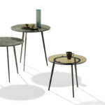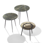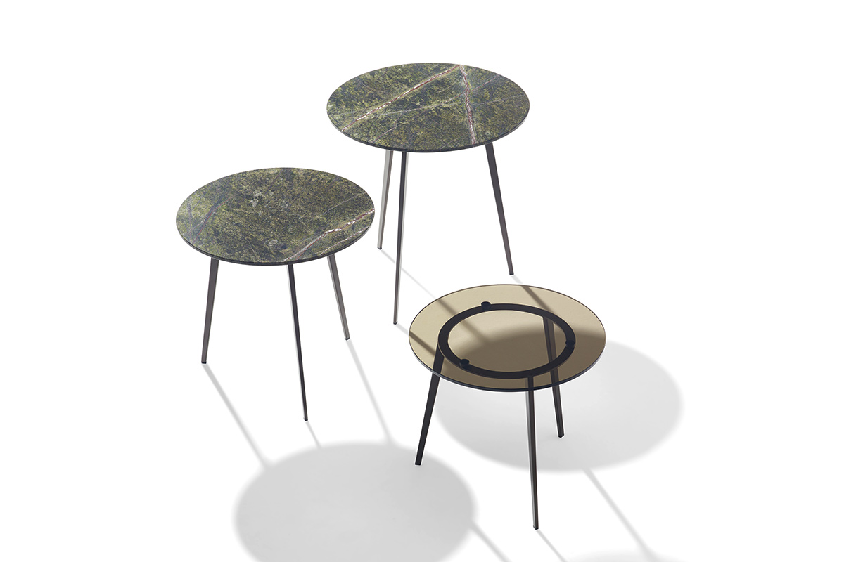 Der Couchtisch TOSCA von Draenert ist ein Allrounder, der in unterschiedlichen Höhen und Oberflächen aus Naturstein oder Glas eine anmutige Silhouette hat. Bei der Glasausführung setzt der ringförmige Unterbau einen spannenden Akzent zu den eher schlichten, konisch zulaufenden Metallbeinen.