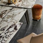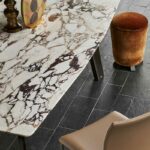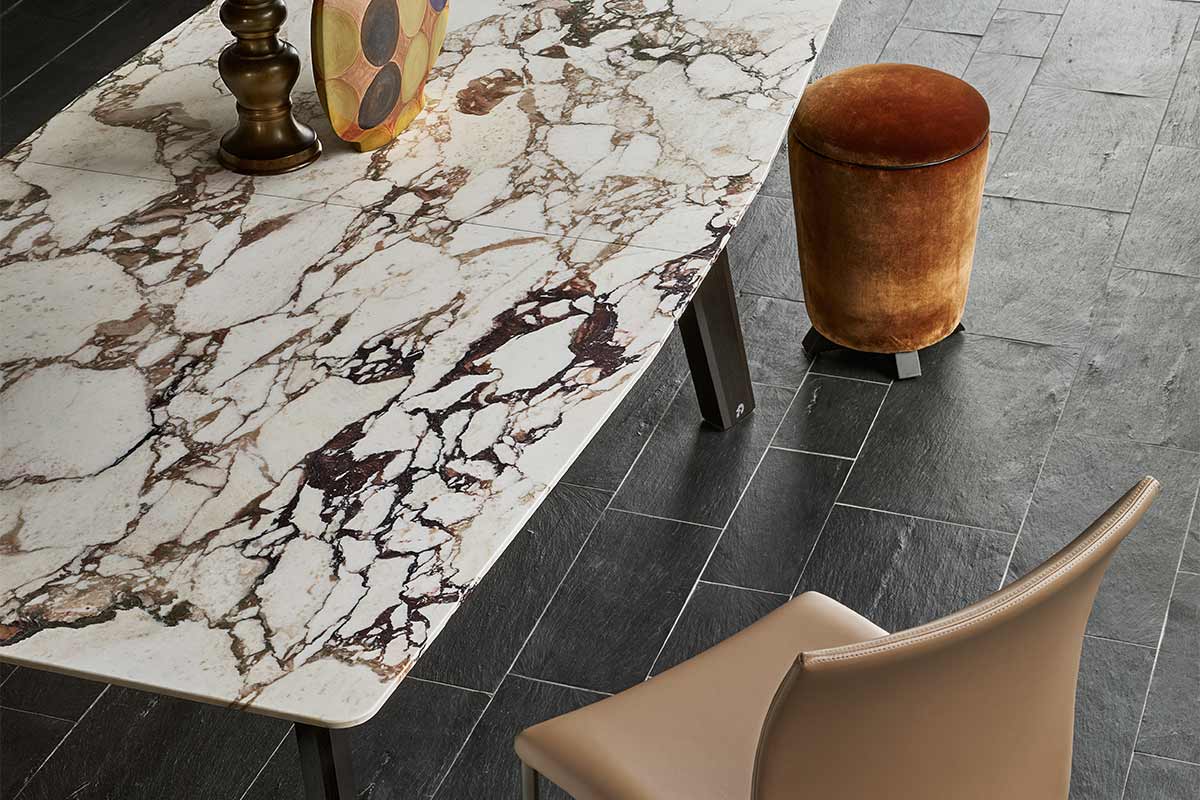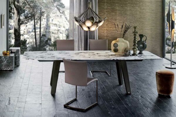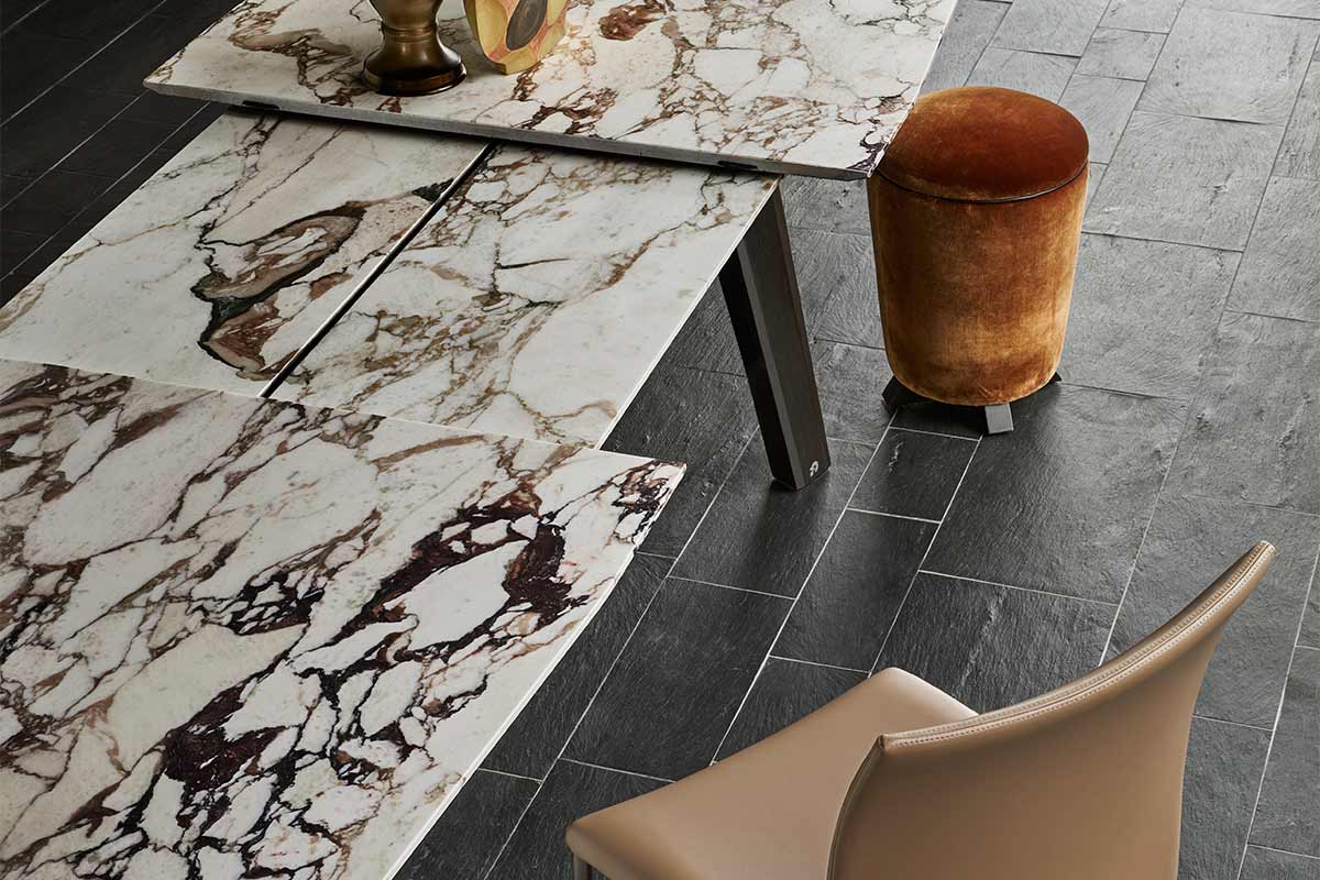 Ausführung: Steinplatte Brown Silk, Gestell Eiche massiv dunkelgrau