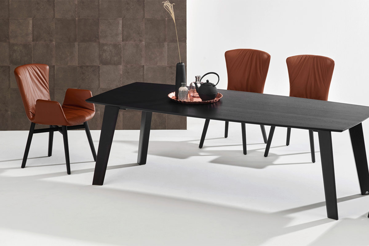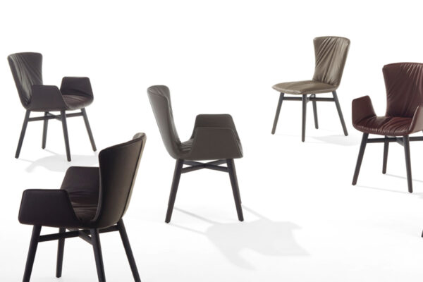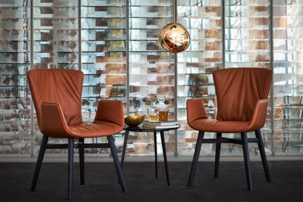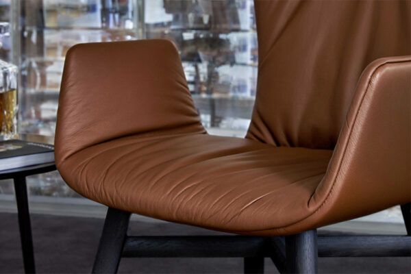 Eleganter EsszimmerstuhlDEXTER mit seiner schwungvollen Kontur ist formal sehr eigenständig. Das ultrasofte, feine Leder mit seinem Faltenwurf schafft einen legeren Look, der in Kombination mit dem kompakten Format noch zusätzlich unterstrichen wird. Für den Bezug stehen 3 hochwertige Lederkollektionen mit insgesamt 91 Farben zur Auswahl.