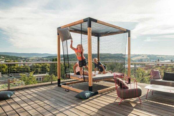 Draußen zuhause.Egoe life bietet unendlich viele Möglichkeiten der Gestaltung. Es liegt an Ihnen, wie Sie das alles zusammenstellen wollen. Ob Terrasse, Hof oder Garten. Überall dort können Sie mit den Würfeln spielen. Ein Hängebett, Blumenkästen, Outdoor-Möbel oder eine Kletterwand für Kinder? Es liegt nur an Ihnen, wie Sie das Würfelelement Leva zusammenlegen. Leva home bedeutet, sich draußen wie zu Hause zu fühlen.