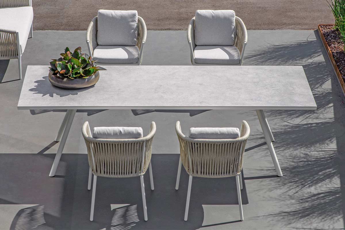 Für schöne Stunden im Garten.Der Sessel Cosmo – eine Kombination von einem Aluminiumgestell und hochwertigen textilen Bändern. Zusammen mit dem flauschigen Kissen ein attraktiver Sessel in eleganter Gestaltung mit bestem Sitzkomfort.