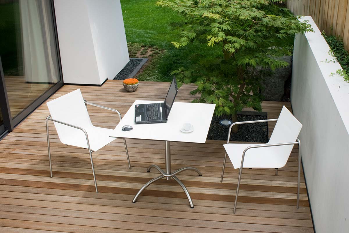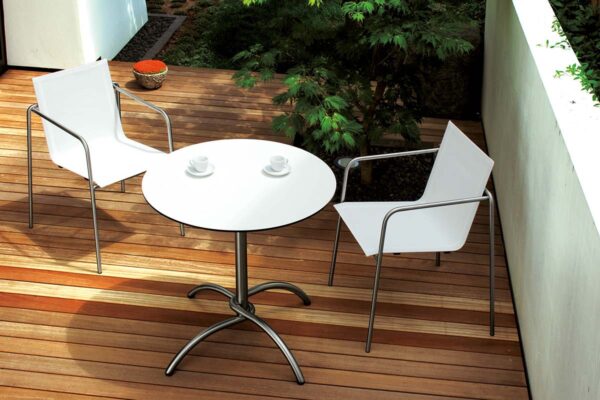 Kleiner Bistrotisch für den Outdoor-Bereich.Den Fischer Möbel Taku Bistrotisch eignet sich besonders für kleine Sitzgruppen im Garten. Das außergewöhnlich geschwungene Gestell ist das Erkennenugsmerkmal dieser Tisch-Serie. Den Bistrotisch bieten wir in der Variante abklappbar und nicht abklappbar an. Beide Varianten erhalten Sie in vielen unterschiedlichen Größen. Bei dem Gestell wählen Sie zwischen Edelstahl und Edelstahl anthrazit matt Strukturlack. Bei der Tischplatte stehen unterschiedliche fm-ceramtop Ausführungen zur Auswahl. Für alle Holzliebhaber gibt es die Platte auch in Vintage-Teak.