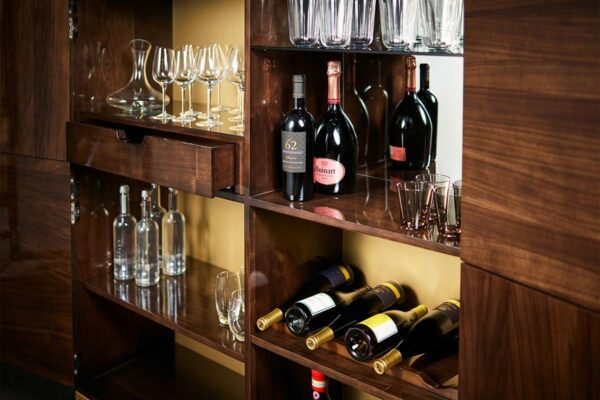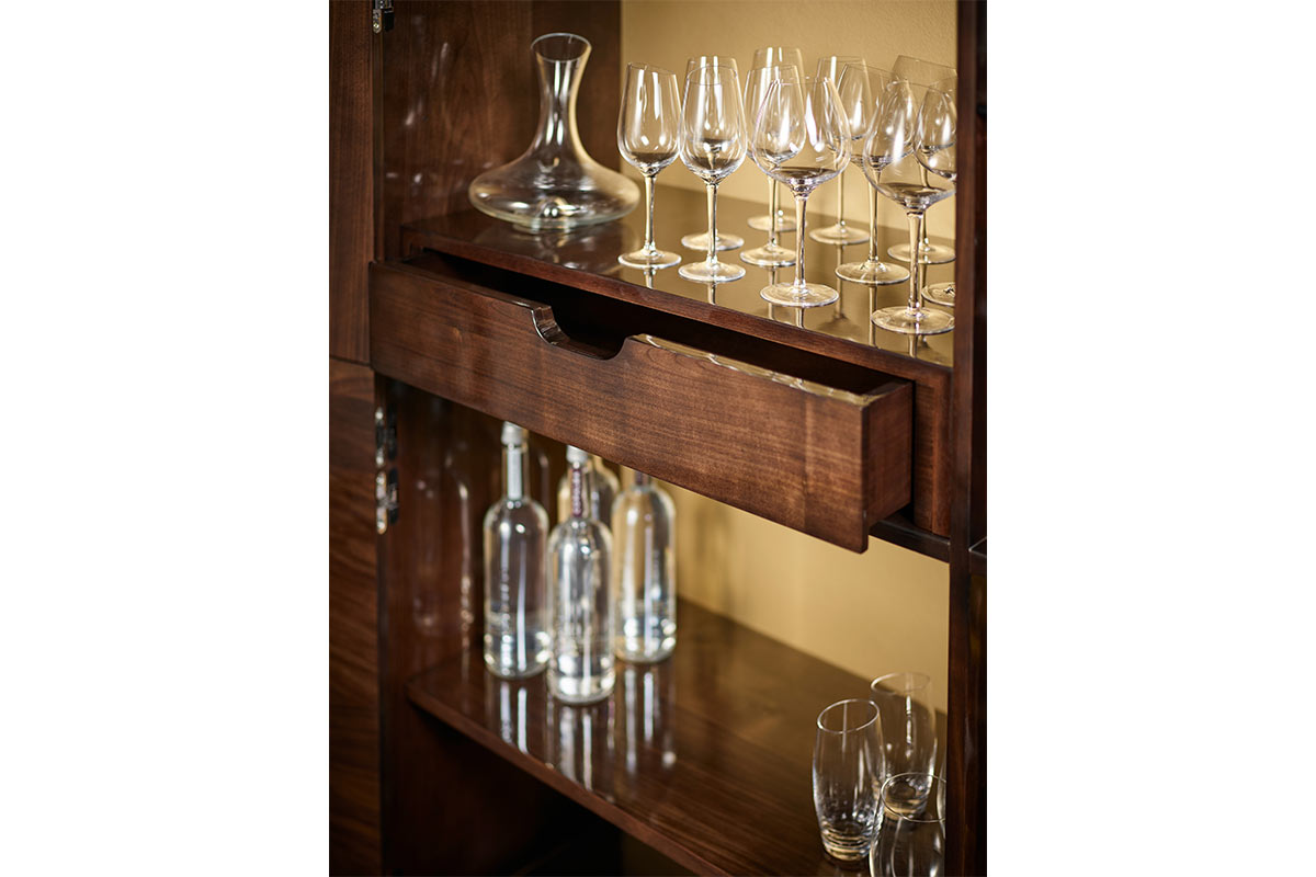 Schrank in Nussbaum (Glasboden, Innenschublade, Flaschenleiste, Innenspiegel gegen Aufpreis) inkl. kostenloser Lieferung im Umkreis von 50 km| Hersteller | |