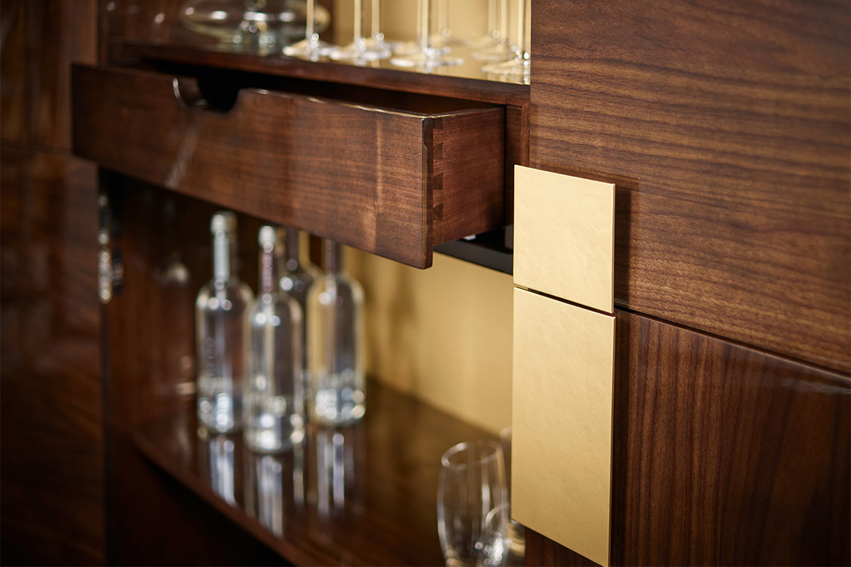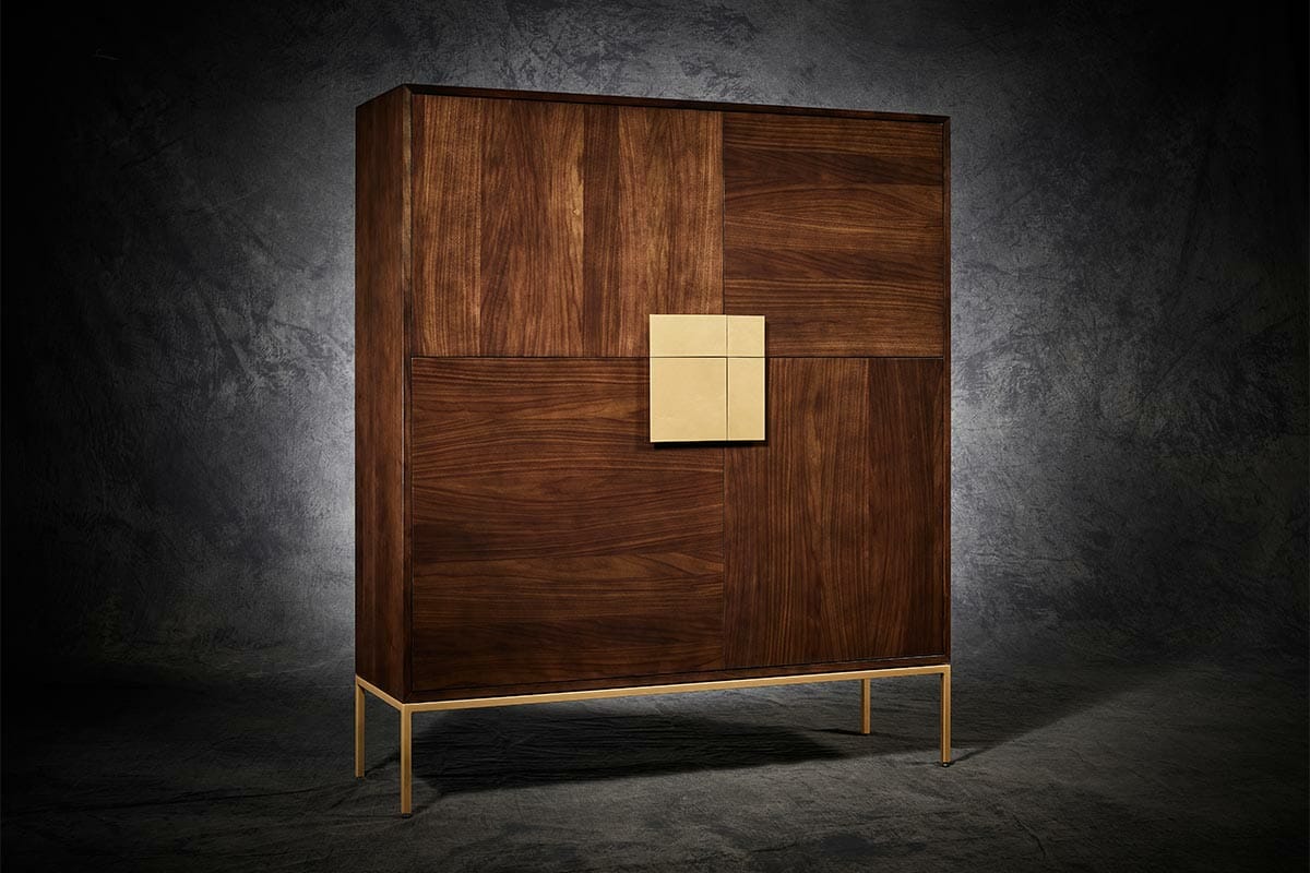 Der elegante KolossZeitlose Möbel aus massiven Hölzern sind das Markenzeichen von Form exclusiv. Das Familienunternehmen hat seinen Hauptsitz in Havixbeck im Münsterland und wird heute von Vater und Sohn gemeinsam geleitet. Die überwiegend maßgefertigten Stücke werden in Havixbeck nachhaltig nach alten Verfahren und Rezepturen in ihrer Oberfläche veredelt. So entstehen Unikate, die sich schon von der Haptik her von industriell produzierten Möbeln unterscheiden. Der Schrank Brooklyn (B 144 cm, T 44 cm, H 165 cm) wird in Eichen- oder Nussbaumholz in Kombination mit gold beschichteten Elementen gefertigt. Ein filigranes Untergestell trägt den imposanten Schrankkorpus. Auch von innen hat unser Schrank Brooklyn sehr viel zu bieten. Hochwertige Verarbeitung mit offenen Zinkungen an den Schubfächern, lackierte oder verspiegelte Rückwände und eine Vielzahl an Einlegeböden.