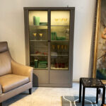 Ausführung: Eiche grau gebeizt, Beschläge bronzefarbig lackiert, inklusive Beleuchtung (WB 28247)