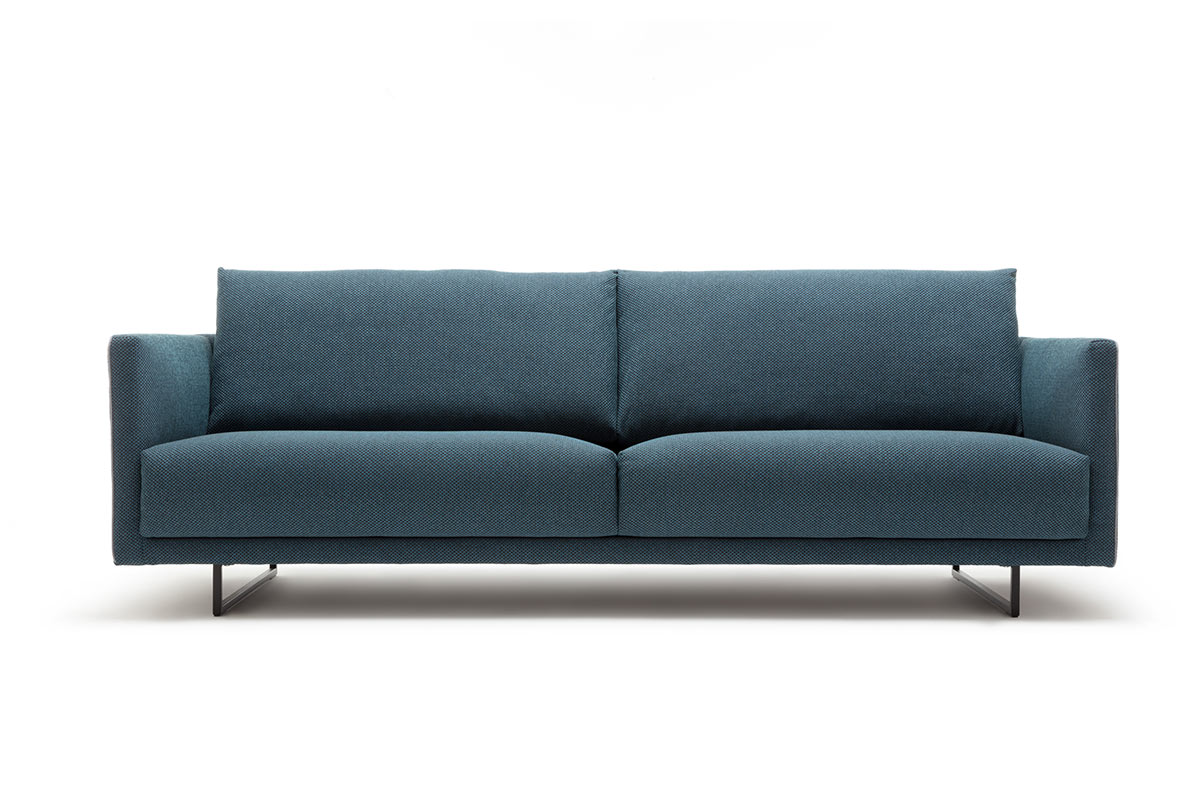 Auf der einen Seite hat das Sofa Freistil 133 bauchige Polster mit weichem Kern, auf der anderen Seite einen klar definierten Rahmen und zierliche Elemente wie zum Beispiel die Kufenfüße. So ein Spiel der Gegensätze findet sich übrigens auch beim Sitzkomfort: freistil 133 ist gedacht, um darauf gerade und aufrecht zu sitzen – was sich aber so soft und bequem anfühlt, als würde man sich darauf ausstrecken.