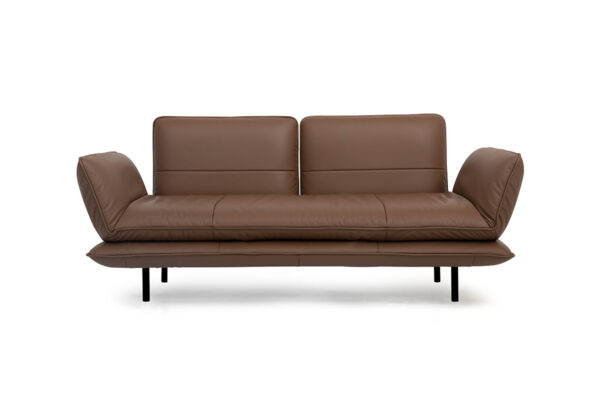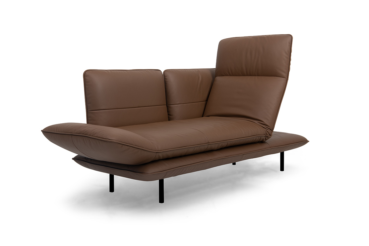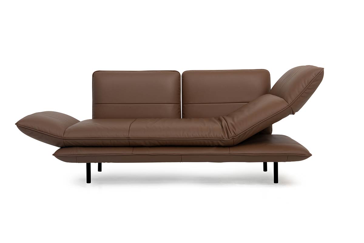 Extravagante LeichtigkeitHinter der edlen Erscheinung versteckt sich überraschend viel Flexibilität. Juna ist dafür konstruiert, in einem stilvollen Ambiente all dies zu erfüllen, was wichtig ist: fernsehen, lesen, schlafen oder einfach nur richtig ausgiebig entspannen. Das Sofamodell lässt sich mit wenigen Handgriffen in eine Liege verwandeln, wobei vom Sitzen bis zum Liegen mit hochgelagerten Beinen die verschiedensten Positionen möglich sind. Unmöglich vorzustellen? Der Clou liegt in der Konstruktion der aufeinandergelegten Polster. Der obere Polsterteil ist ein Faltwunder und kann empor geklappt werden. Auf diese Weise erinnert das Sofa an die Form eines Liegestuhls und verspricht besonderes Relax-Vergnügen. Ausklappbare Armteile sorgen zusätzlich für noch mehr Komfort.