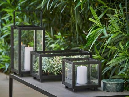 Materialien: mundgeblasenes Glas, pulverbeschichteter Stahl