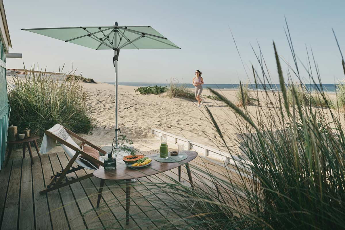 Der Windrobuste in SmallDer Glatz Sonnenschirm Fortino Riviera vereint stilvolles Design mit hoher Funktionalität. Speziell für windexponierte Standorte wie Küsten, Gärten und Terrassen konzipiert, hält dieser Mittelstockschirm Windgeschwindigkeiten bis zu 80 km/h stand. Sein robustes Gestell aus natureloxiertem Aluminium und das flache, aerodynamische Schirmdach garantieren Stabilität und Langlebigkeit. Der Fortino Riviera lässt sich dank patentiertem, gegenläufigem Öffnungsprinzip und praktischem Spannhebel mühelos öffnen und schliessen – sogar über gedeckten Tischen bis 150 cm. Perfekt für stilvollen Schattenkomfort an windigen Tagen.
