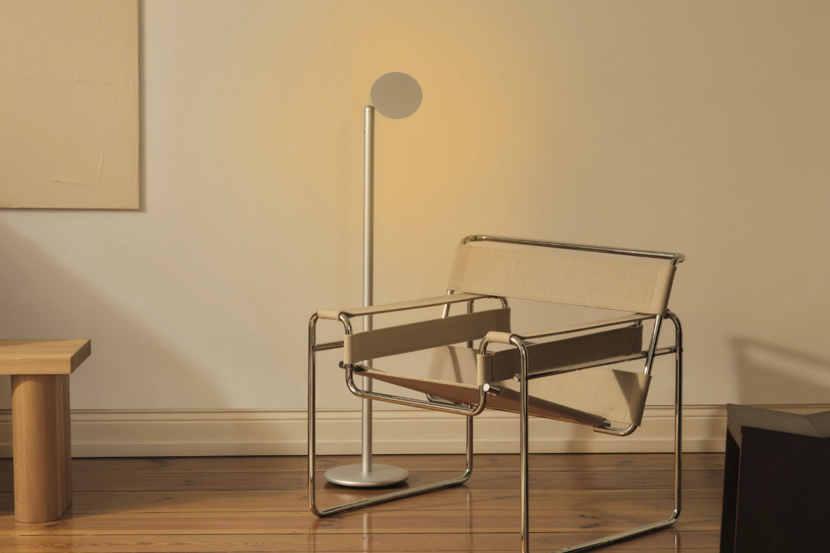 Flexible StehleuchteDie Parrot Floor von GRAU ist eine flexible Stehleuchte aus eloxiertem Aluminium mit endlos 360° drehbarem Leuchtenkopf. Ob fokussiertes Leselicht oder sanfte Ambientebeleuchtung – sie passt sich jeder Situation an. Dynamische Lichtszenen (Vibes) und Sunset Dimming sorgen für eine gemütliche Atmosphäre und unterstützen einen gesunden Schlaf. Die mobile Version Parrot Floor Portable lässt sich bequem mit dem Ladestein aufladen. Ihr tangential angeordneter Kopf verleiht der Leuchte eine elegante, skulpturale Form.