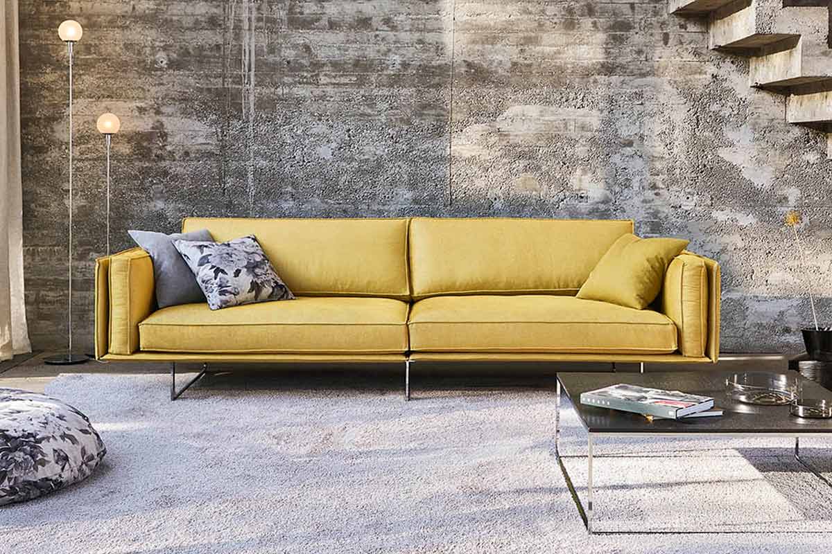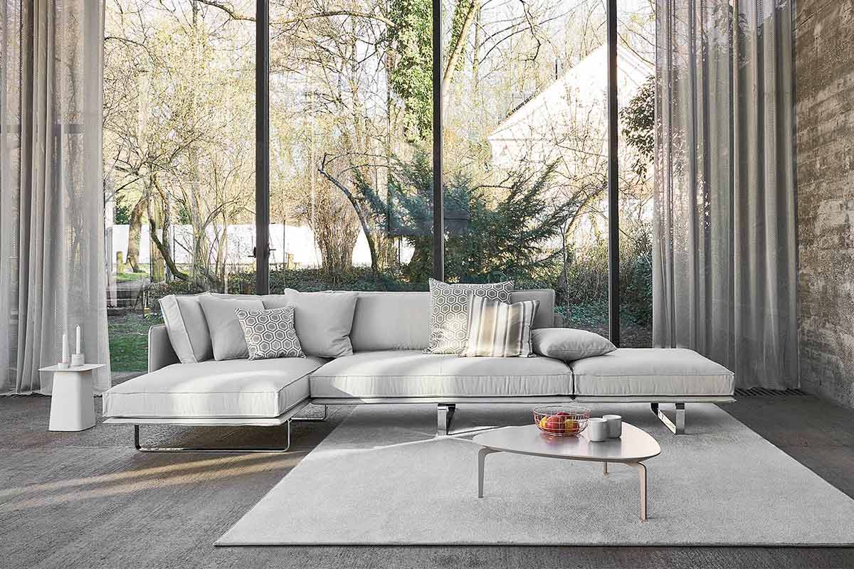 Cube Air verbindet zwei Eigenschaften, die unterschiedlicher eigentlich nicht sein könnten: luftige Leichtigkeit und üppiges Volumen. Durch den filigranen Unterbau scheinen die dicken Polster, die trotz ihrer Weichheit angenehmen Halt geben, fast zu schweben. Mit dem modernen Planungsprogramm wird das Wohnzimmer zu einer lässigen Lounge-Zone, in es der sich wunderbar entspannen lässt. Seine schwerelose Anmutung verdankt CUBE AIR den schlanken Metallkufen, auf denen der Korpus der Sitzelemente ruht. Dieses tragende Gestaltungselement wird auch unter anderem auch von der Armlehne aus Bugholz aufgegriffen. Dort fungiert es als filigrane und doch stabile Stütze, durch die selbst das Ablegen von dicken Büchern kein Problem ist. Für ein ganz individuelles Lounge-Gefühl können die Module von CUBE AIR flexibel kombiniert werden. Vom klassischen Dreiersofa bis zur raumgreifenden Sitzlandschaft sind unendlich viele Sitz-und Liegevarianten möglich.