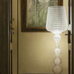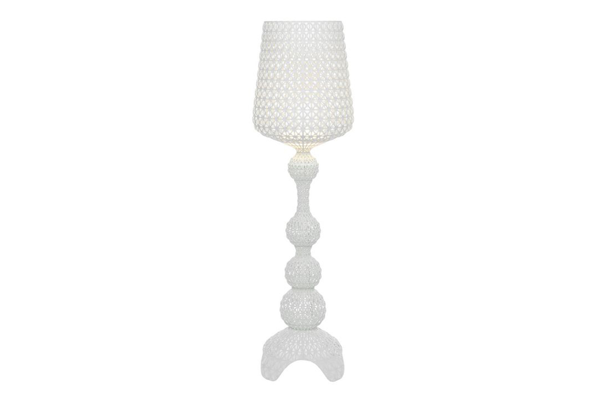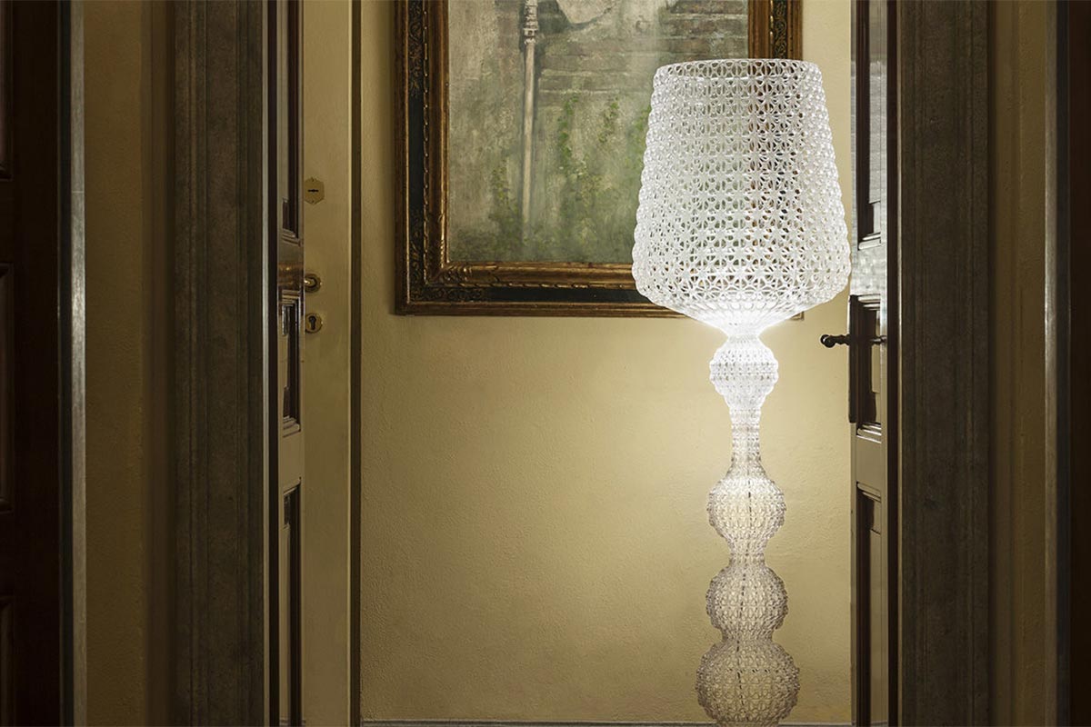 Die Leuchte Kabuki entsteht im Spritzgussverfahren. Die technische Raffinesse dieses Verfahrens ermöglicht es, eine Struktur mit einem Muster zu erhalten, das Spitze nachahmt. Die besondere perforierte Oberfläche streut das Licht.